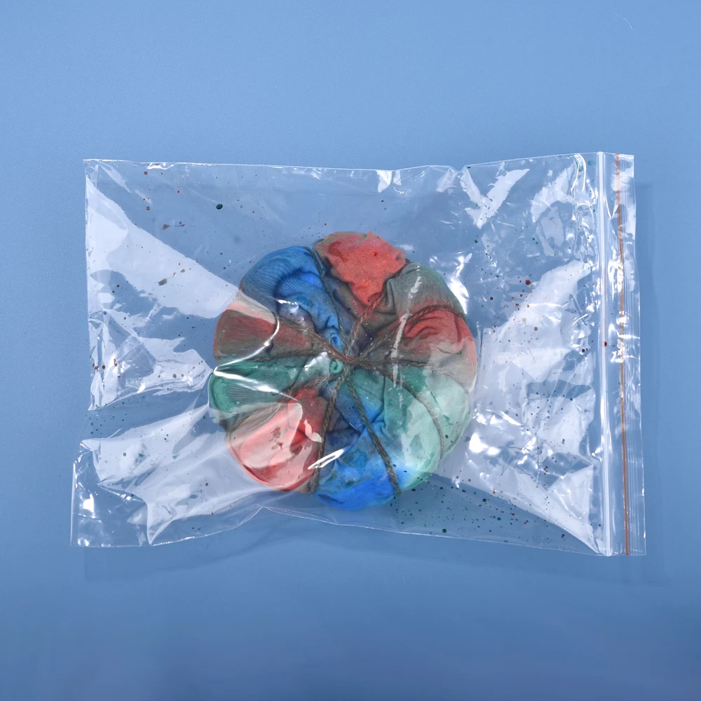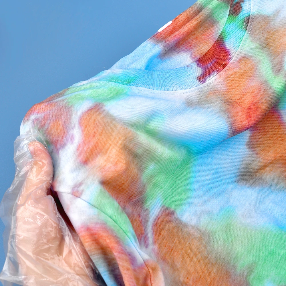 Dopo la tintura, effettuare i vestiti in una borsa sigillata. In attesa di 8-24 ore
