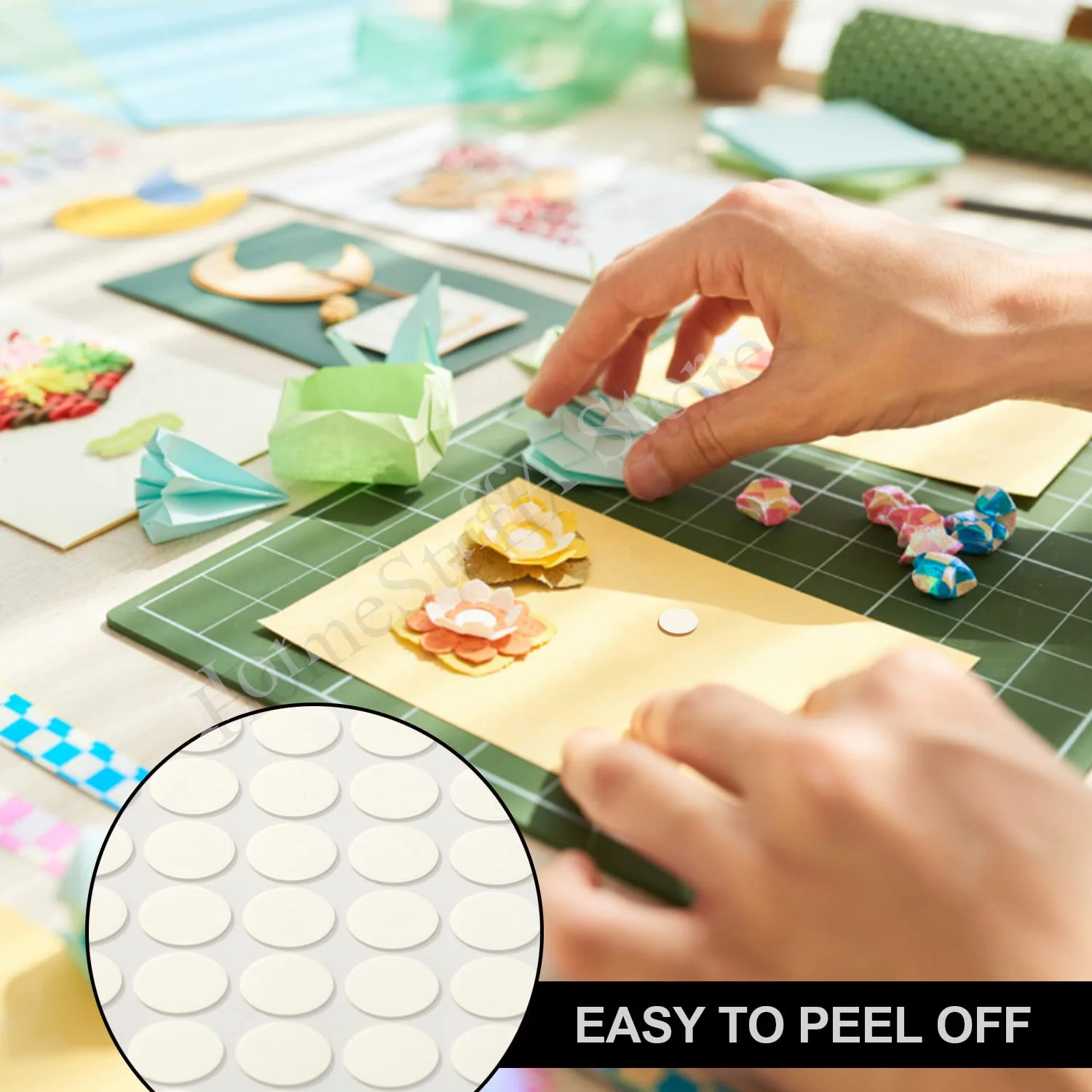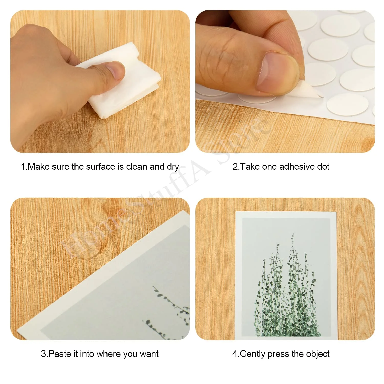 3.Questi adesivi a punti impermeabili possono essere ampiamente applicati nello scrapbooking, nella creazione di cartoline, biglietti di auguri, inviti, artigianato fai-da-te, decorazioni per la casa, incollaggio di buste, incollaggio di carta fotografica, pareti decorative, decorazioni d’interni, manutenzione della casa, protezione dei mobili, ecc., offrendoti molta comodità nell’uso quotidiano