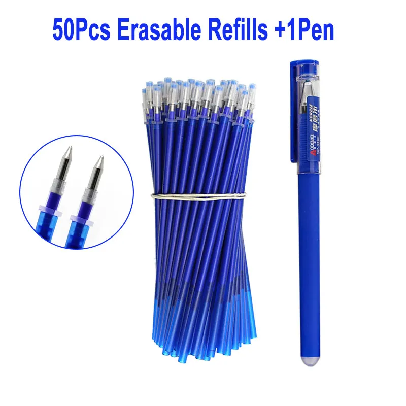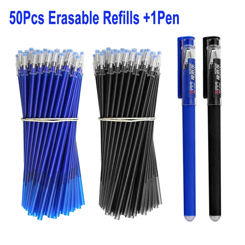 51 pz/set penna Gel cancellabile 0.5mm testa stile proiettile penna cancellabile asta di ricarica inchiostro nero blu manico lavabile per cancelleria scolastica strumento di scrittura per ufficio regalo