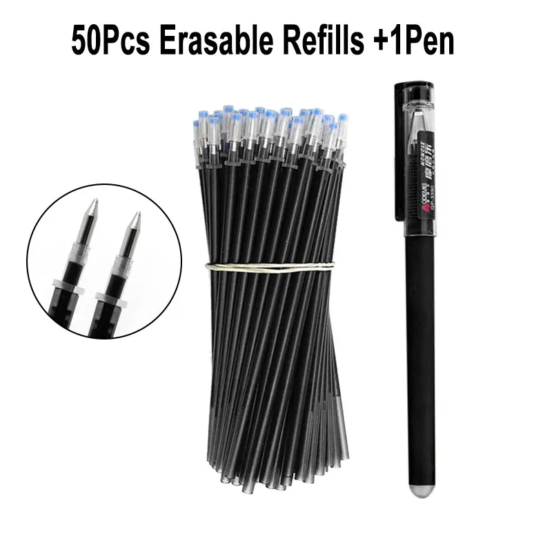 51 pz/set penna Gel cancellabile 0.5mm testa stile proiettile penna cancellabile asta di ricarica inchiostro nero blu manico lavabile per cancelleria scolastica strumento di scrittura per ufficio regalo