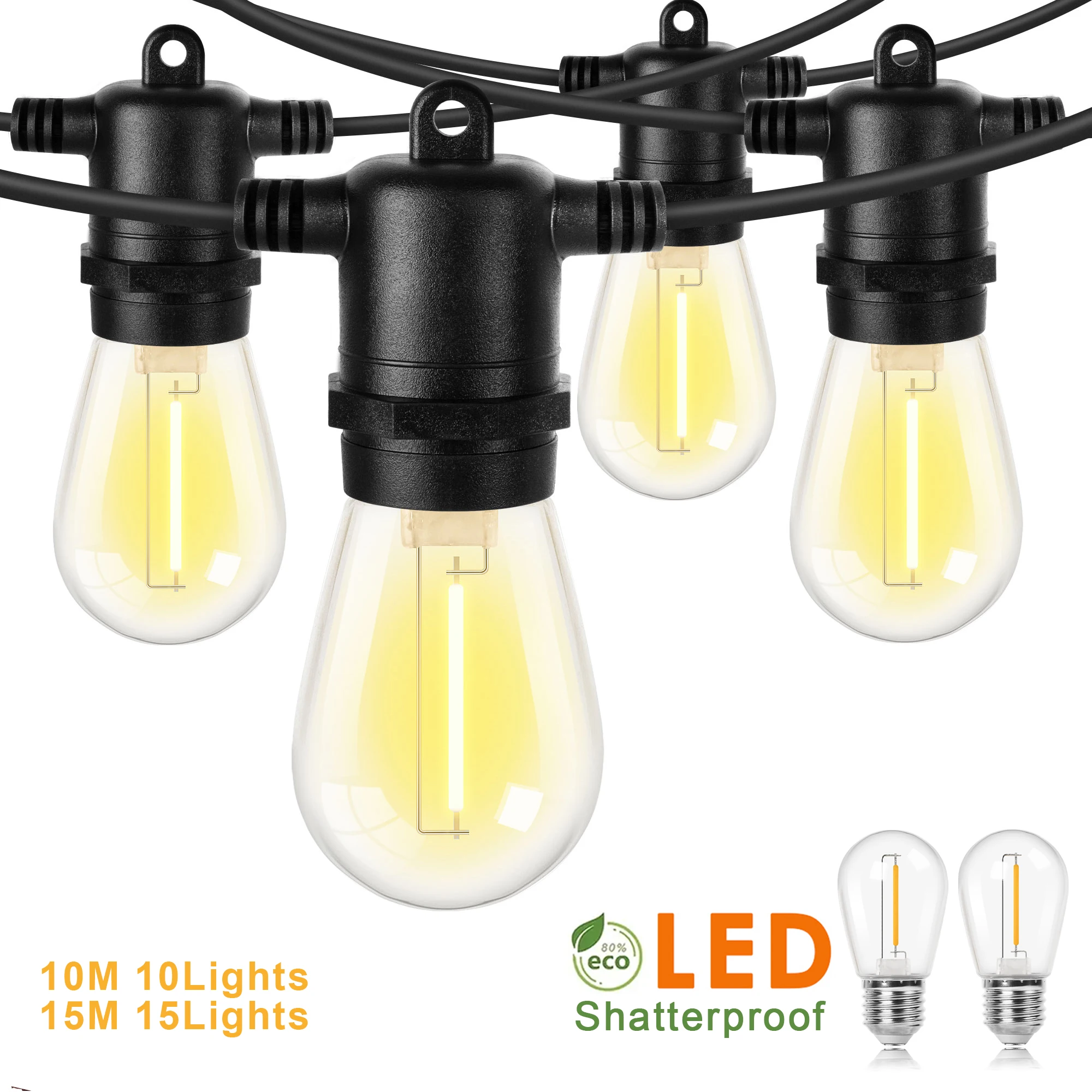 Resistente alle intemperie e infrangibile: luci a corda da bistrot a led da esterno costruite con tecnologia IP44 resistente alle intemperie, luci a corda a led per patio esterno plug-in per uso interno ed esterno.le luci della stringa da esterno a led possono resistere alle temperature estreme, pioggia, vento e condizioni umide, puoi visualizzare in modo sicuro le luci della stringa del cortile durante tutto l’anno.