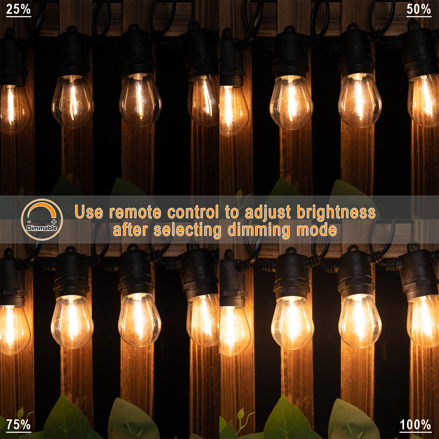 Luci a corda S14 per patio dimmerabili: luci a corda per esterni a led da 33 piedi e 50 piedi, prese per appendere 10/15, luci per esterni S14 per patio, luci per balconi da esterno bianche calde, adatte per dimmer, luci per feste all’aperto(Tips: il dimmer non è incluso)