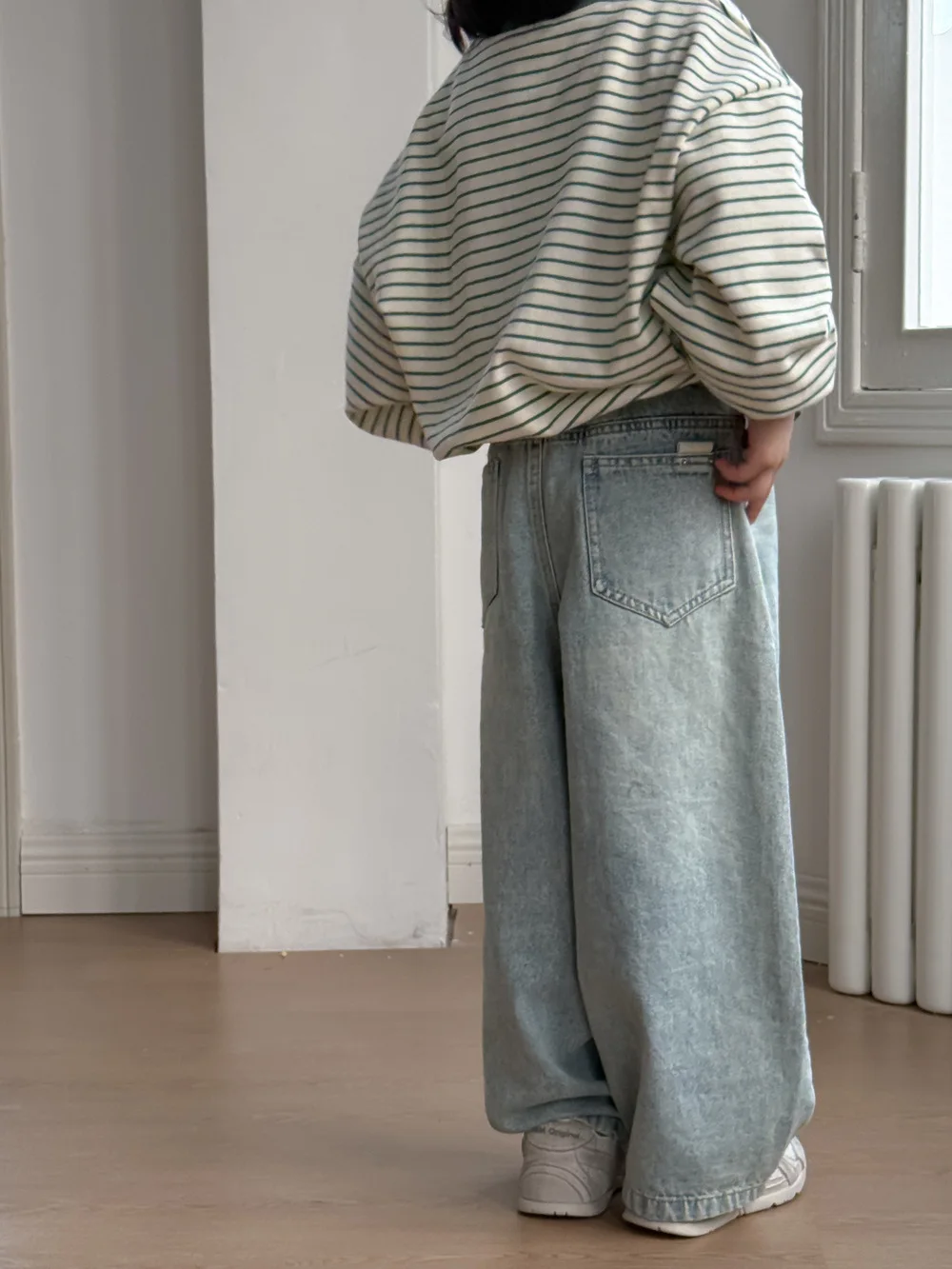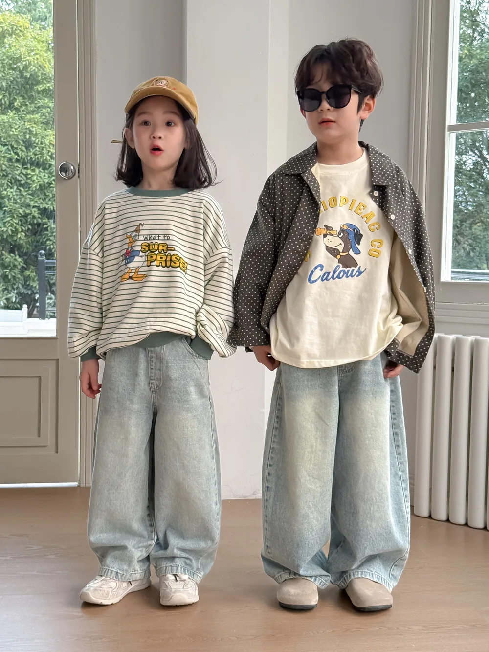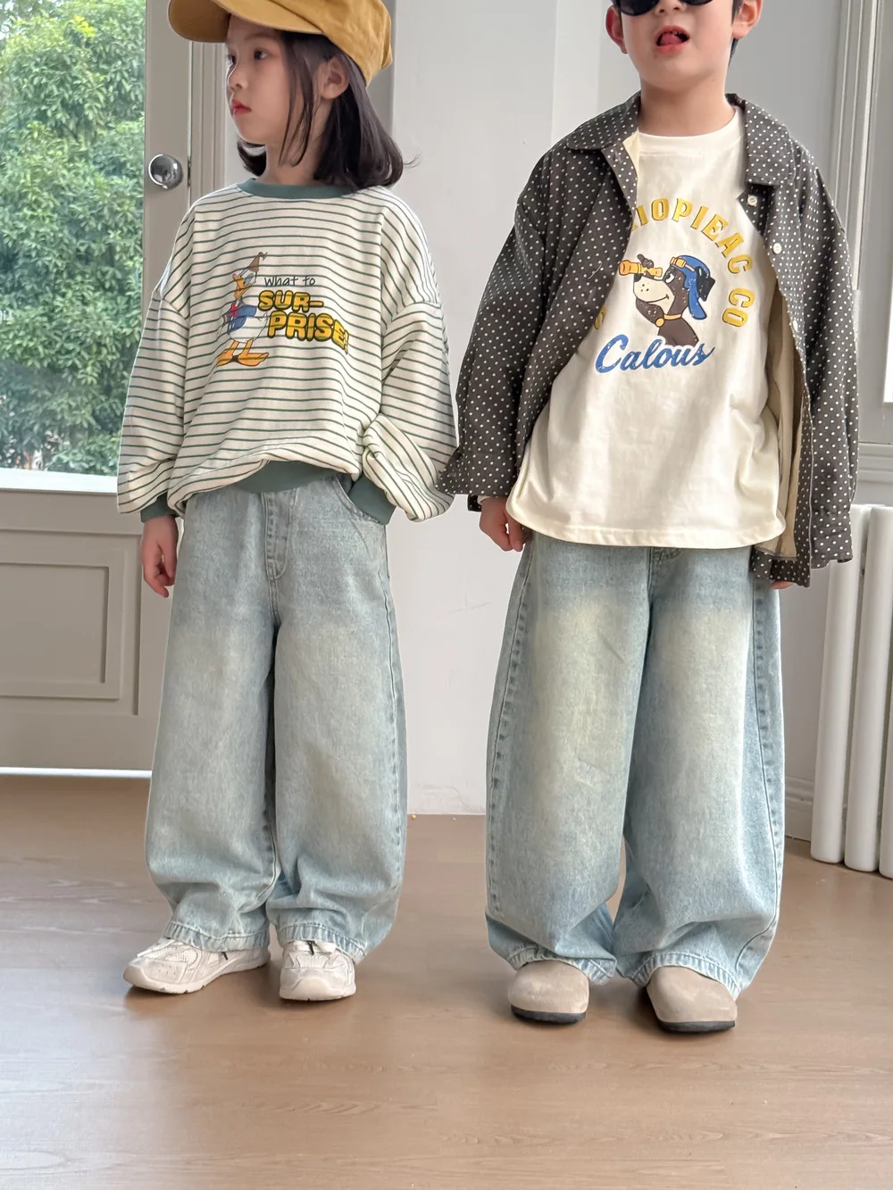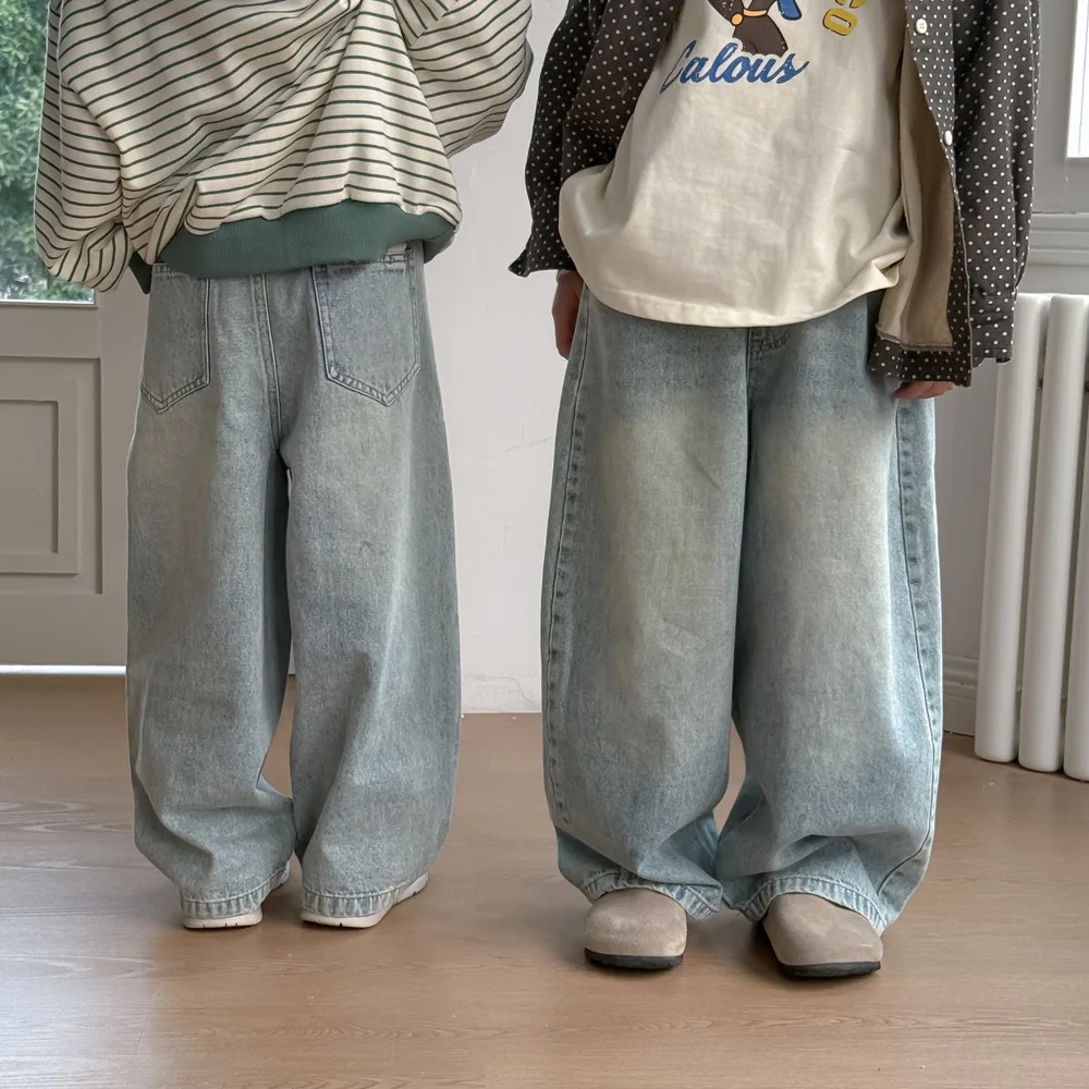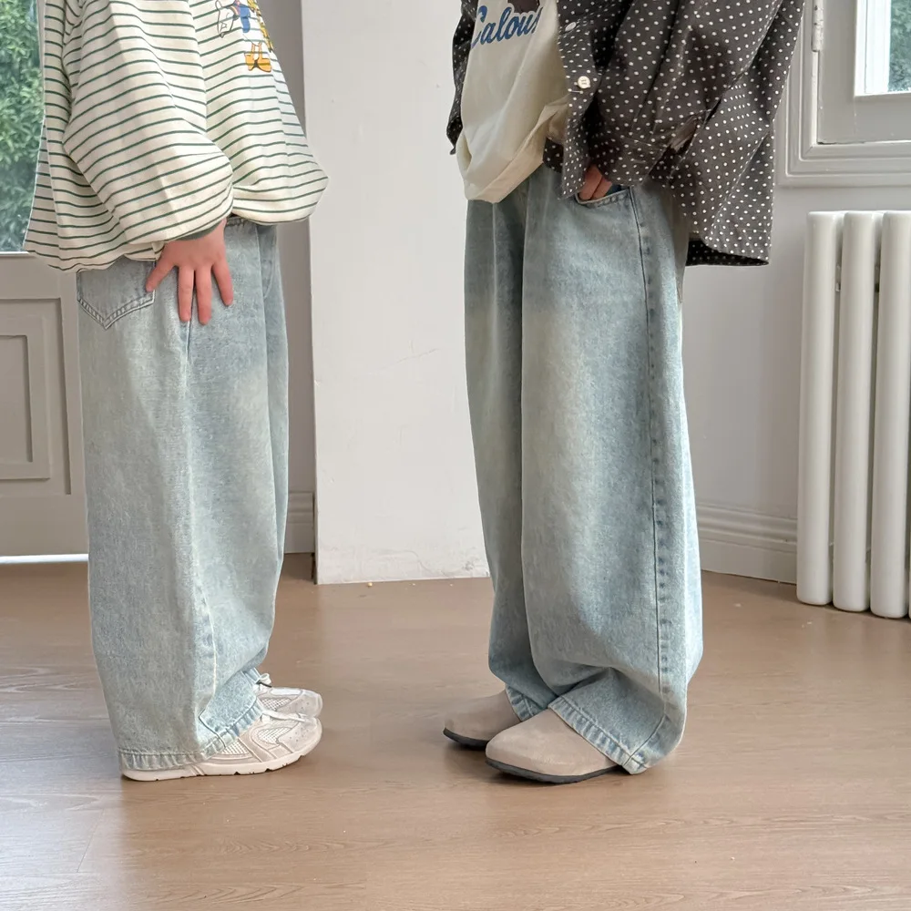 5400 Jeans per bambini 2025 Primavera Autunno Nuovi pantaloni per ragazzi e ragazze Pantaloni dritti in denim casual tinta unita