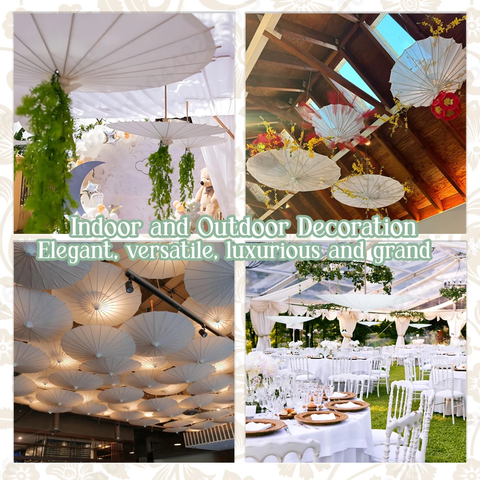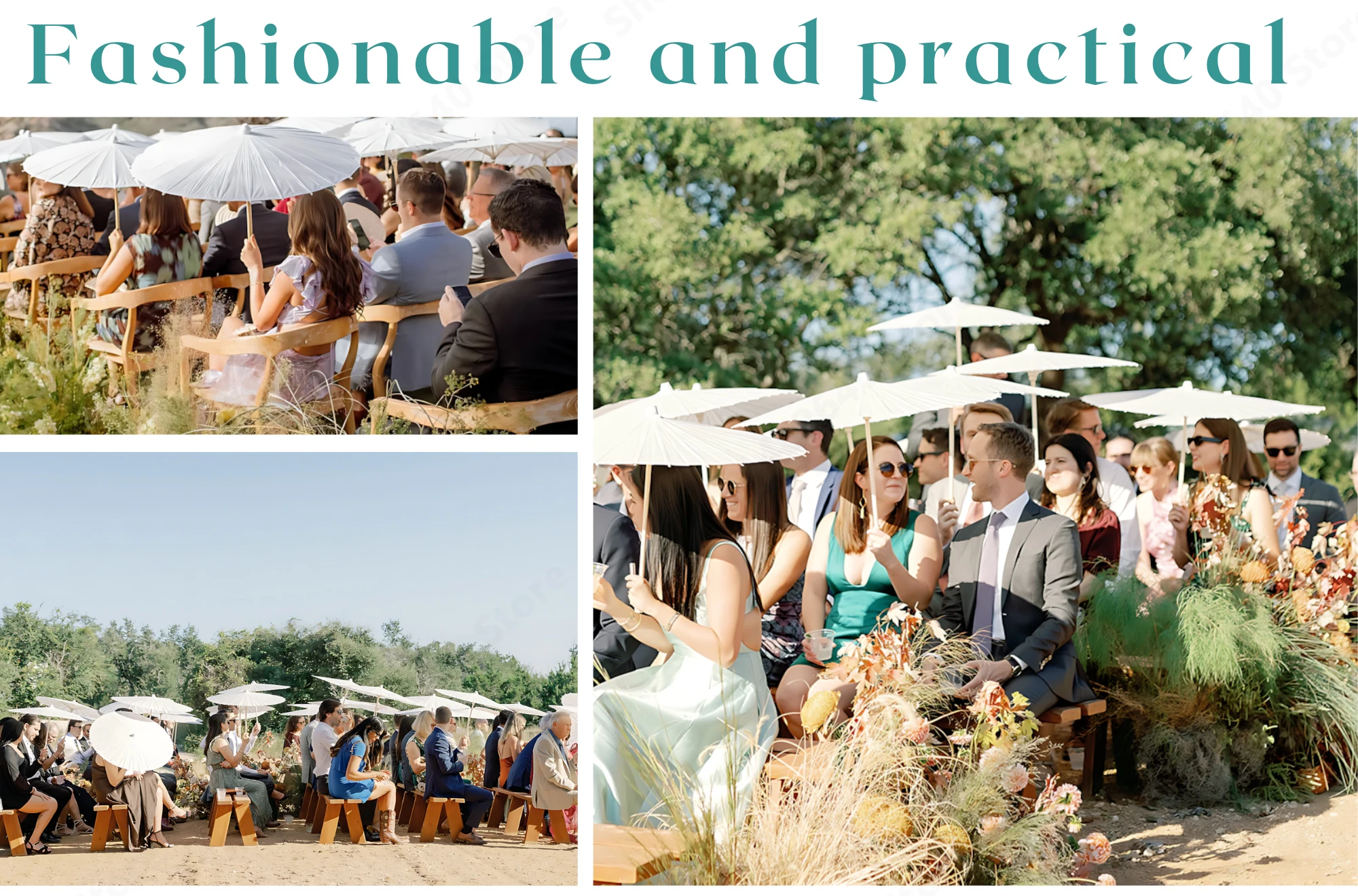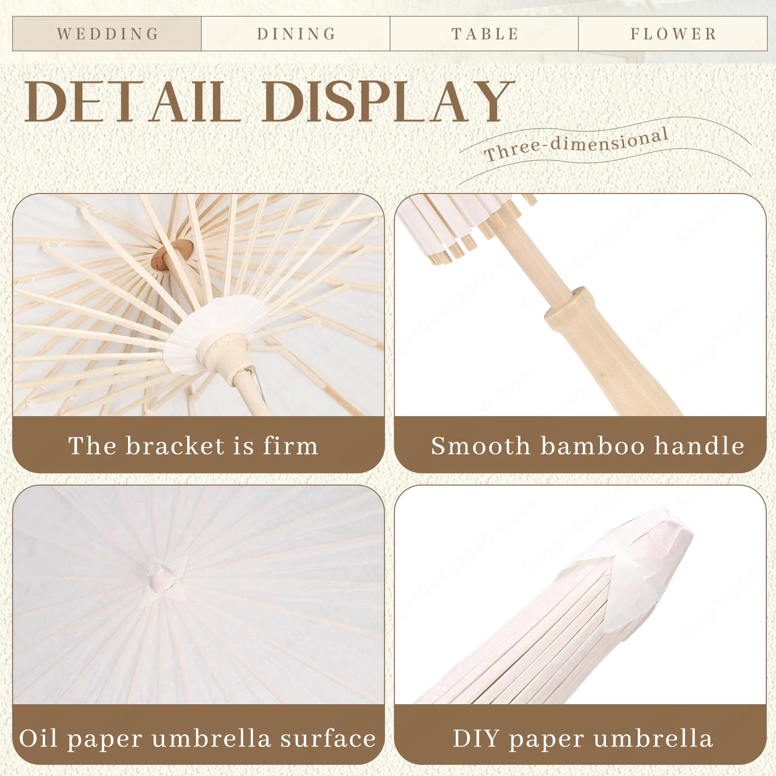 Con l’estetica tradizionale cinese, il volto di ombrello bianco puro abbinato al colore originale del legno dà un tocco retrò ed elegante, aggiunge un fascino culturale orientale e un temperamento elegante per l’evento.Il design generale è semplice e raffinato, lo farlo un’eccellente sfondo per la fotografia di matrimonio.