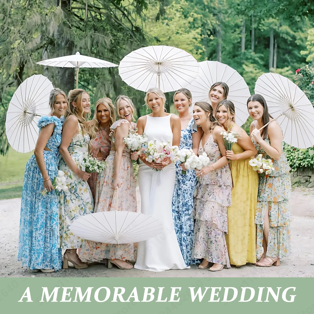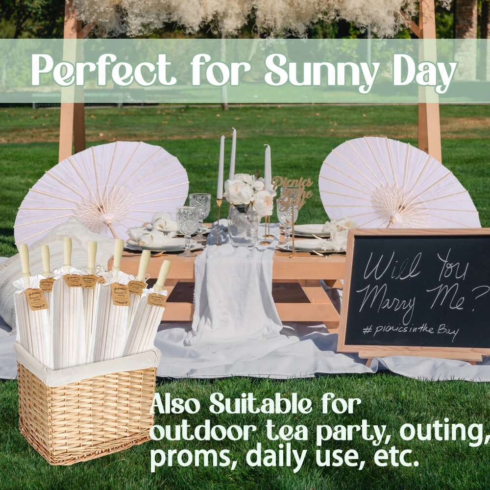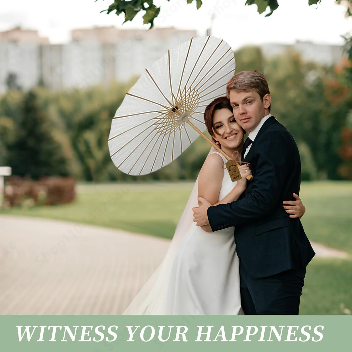 Con l’estetica tradizionale cinese, il volto di ombrello bianco puro abbinato al colore originale del legno dà un tocco retrò ed elegante, aggiunge un fascino culturale orientale e un temperamento elegante per l’evento.Il design generale è semplice e raffinato, lo farlo un’eccellente sfondo per la fotografia di matrimonio.