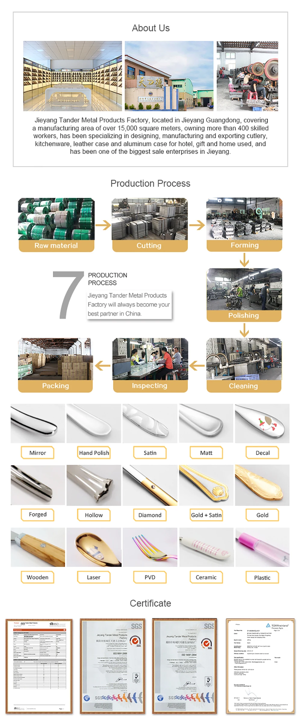 ● Tecnici che specializzati in prodotti di posate per oltre 10, qualità affidabile e garantita.
