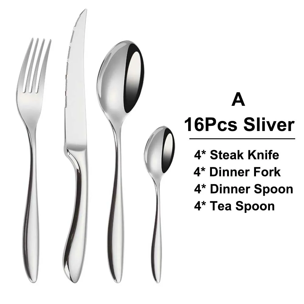4 pezzi-A: coltello da bistecca/forchetta da pranzo/cucchiaio da pranzo/cucchiaio da tè