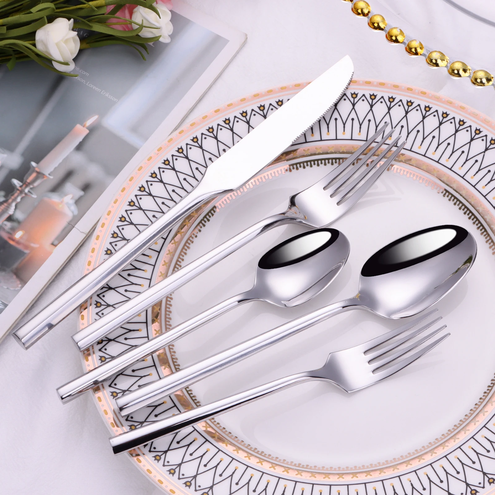 1.Set di posate occidentali con manico esagonale in acciaio inossidabile in nastro, lucidatura a specchio e opaca.