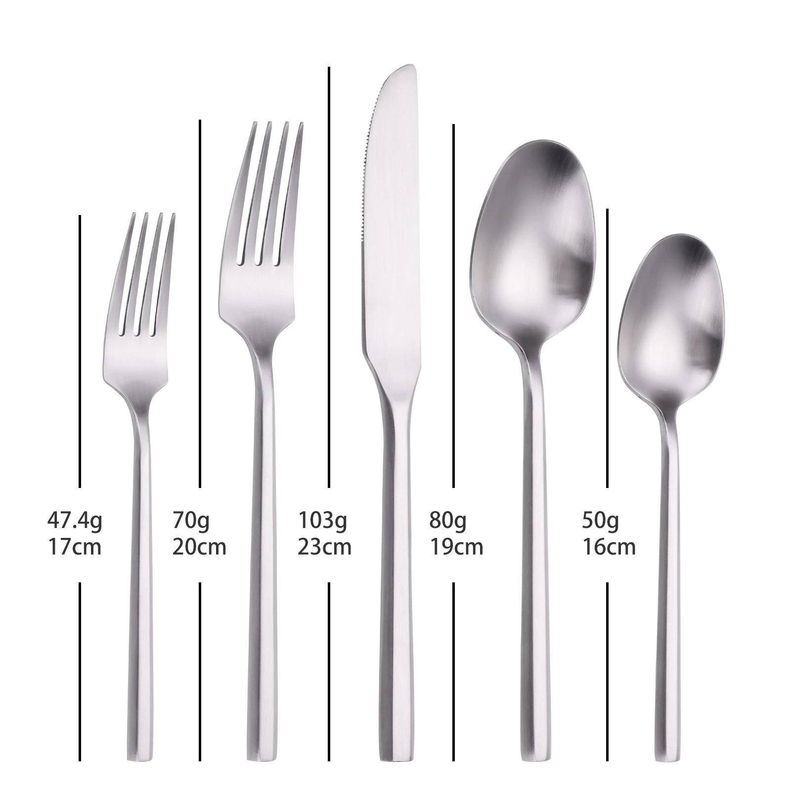 5 pezzi:Coltello da cena/Cuchara da cena/Forchetta da cena/Cuchara da dessert/Forchetta da dessert