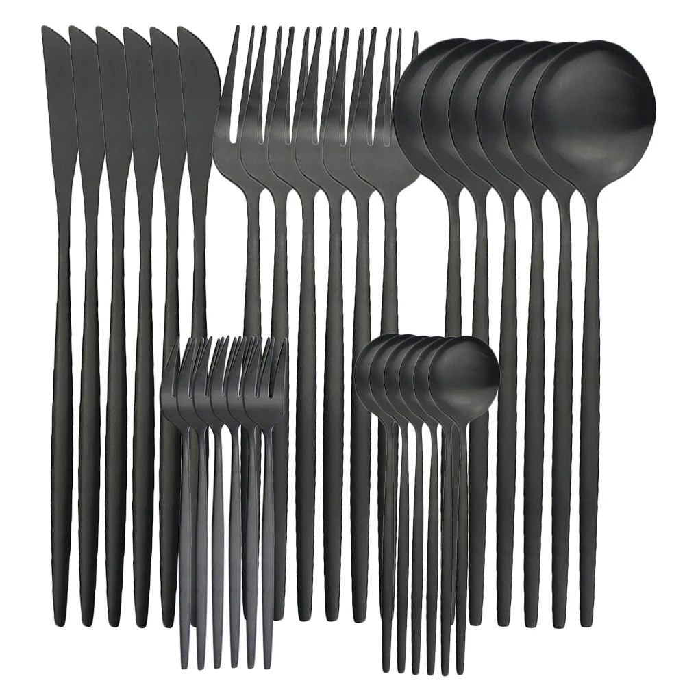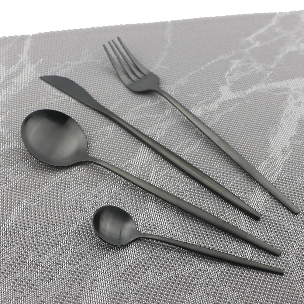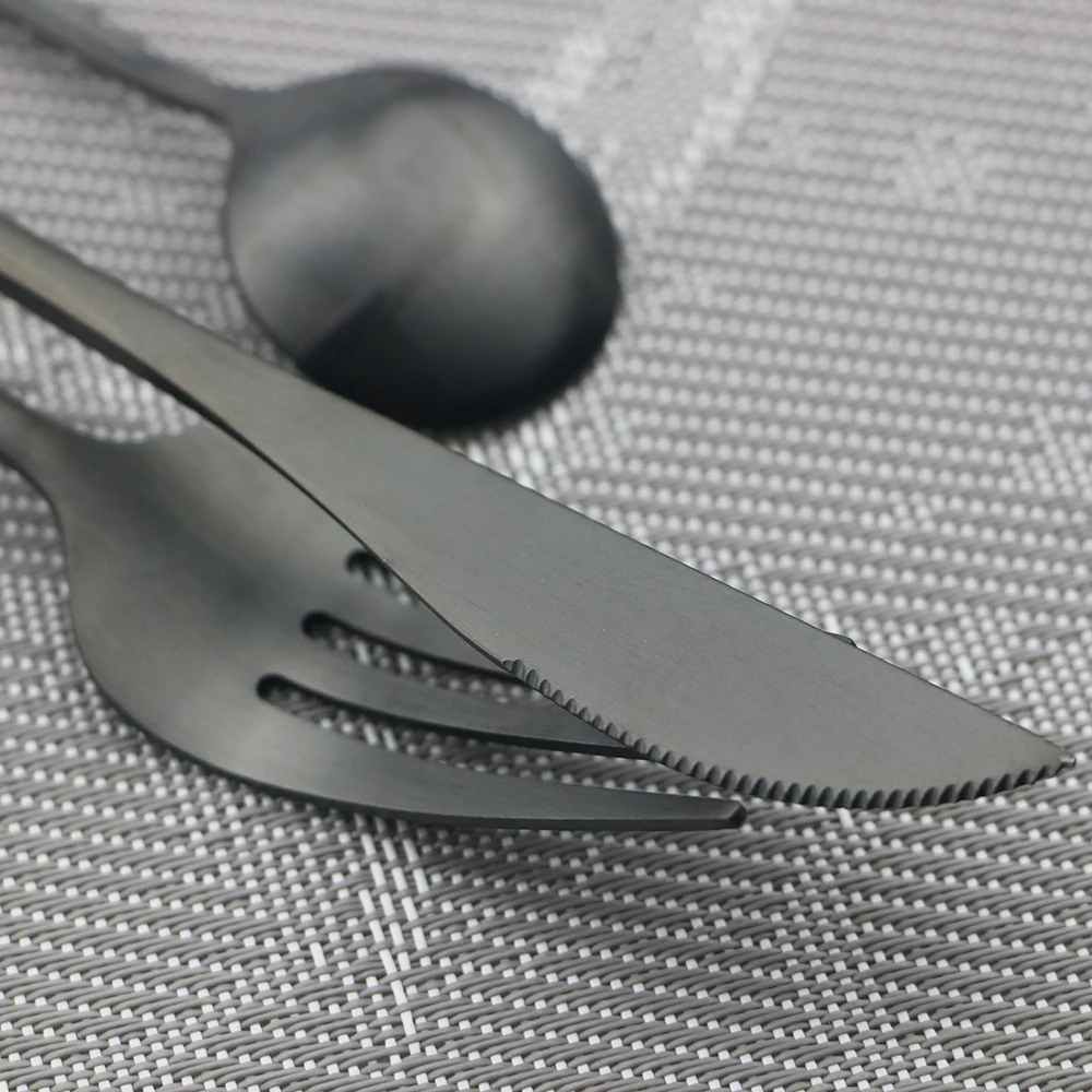 3. Lunghezza e peso del set di posate: coltello da tavola (220mm + 40g) /cucchiaio da tavola (21mm + 40g) /forchetta da pranzo (215mm + 30g) /Forchetta per torta (135mm + 10g) /cucchiaino da tè (125mm + 10g)