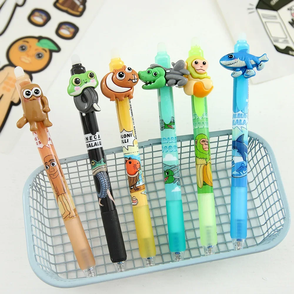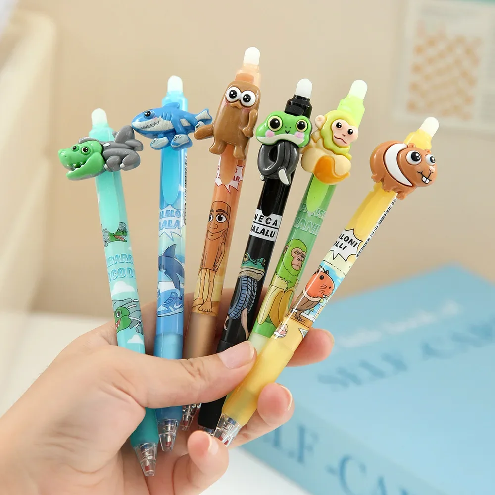 6/36 pz Italiano Brainrot Ai Animali Tungtungtungsahur Tralalelotralala Cancellabile Blu Presse Penna Neutra Studente Regalo di Cancelleria