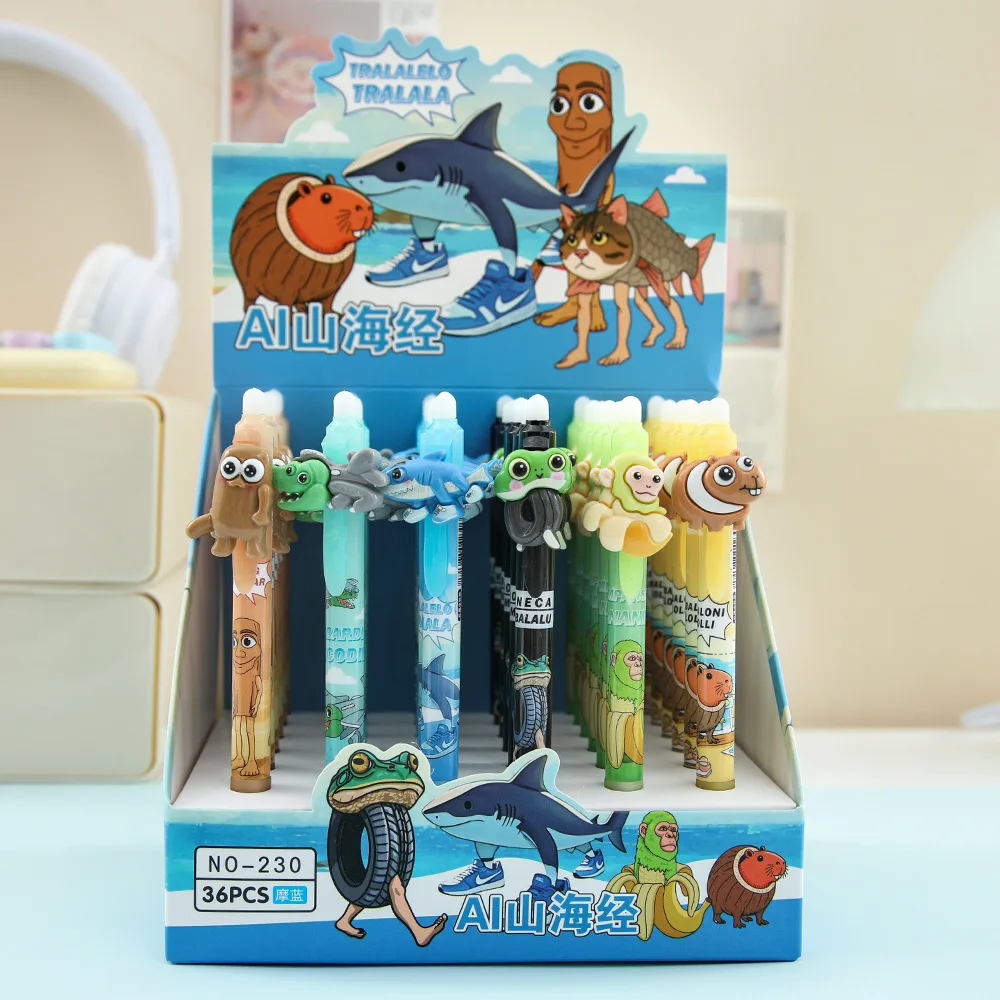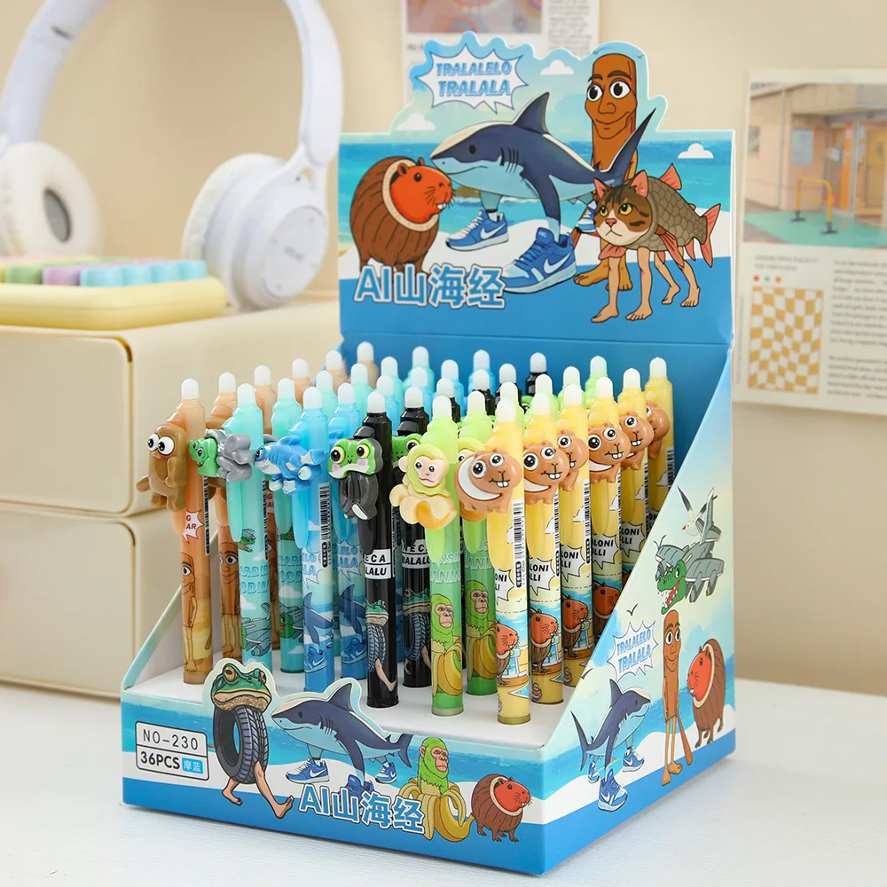 6/36 pz Italiano Brainrot Ai Animali Tungtungtungsahur Tralalelotralala Cancellabile Blu Presse Penna Neutra Studente Regalo di Cancelleria