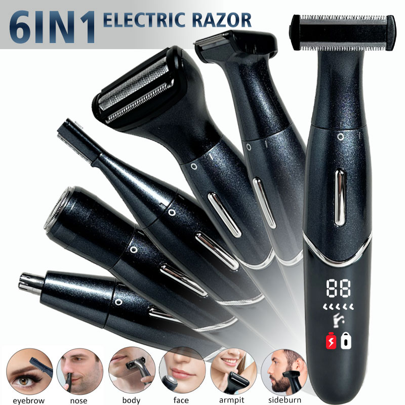 Rasoio elettrico 6 in 1 per uomo Tagliacapelli per naso Rasoio elettrico indolore Display a LED