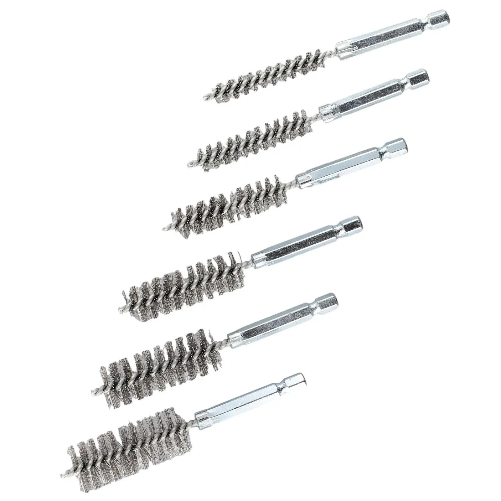 *Specifica multiple: ci sono 6 diverse dimensioni di spazzole con foro in acciaio inossidabile a filo ritorto, incluse 8 mm, 10 mm, 12 mm, 15 mm, 17 mm e 19 mm indiametro;Ogni spazzola ha una lunghezza di 4 pollici e gambo esagonale da 1/4 di pollice montata su qualsiasi trapano elettrico o smerigliatrice (non inclusa).