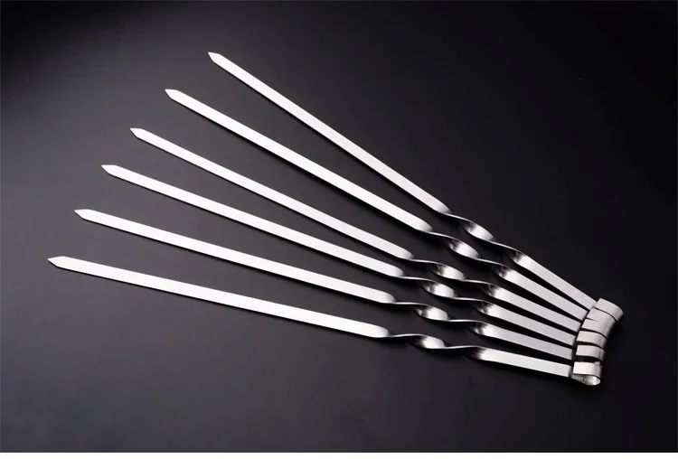 Spiedini piatti Manico lungo in legno Spiedino per barbecue 55 cm Shish Kebab Bastoncini per barbecue Acciaio inossidabile All’aperto Griglia Ago Forchette per barbecue