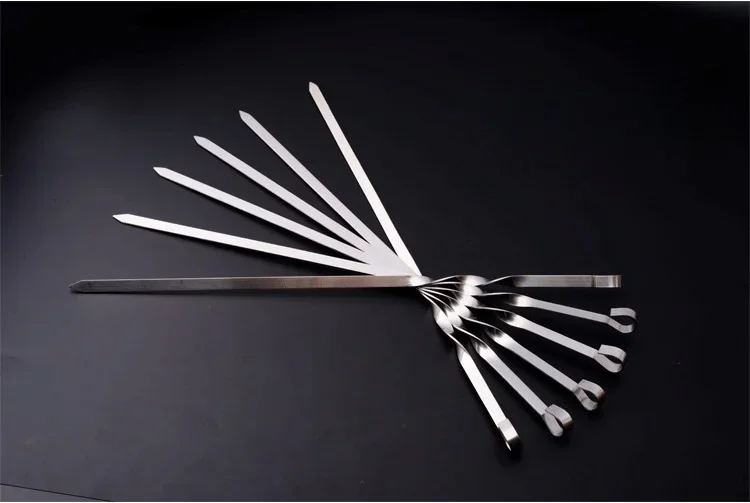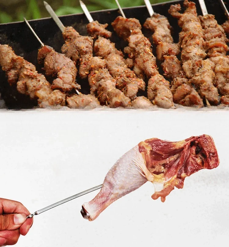 La testa dell’ago per arrostire è stata affilata per farlo più facile per penetrare la carne.Si prega di pagare attenzione alla sicurezza durante l’operazione.