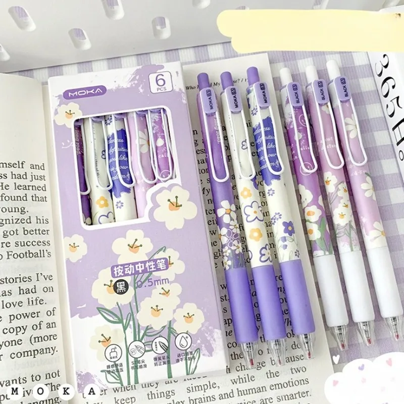 6 pz/set Estetica Fiore Penna Ins Stile Daisy Tulip 0.5mm ST Punta Liscia Esame Penna Gel per Gli Studenti Carino Regalo di Scrittura 2025