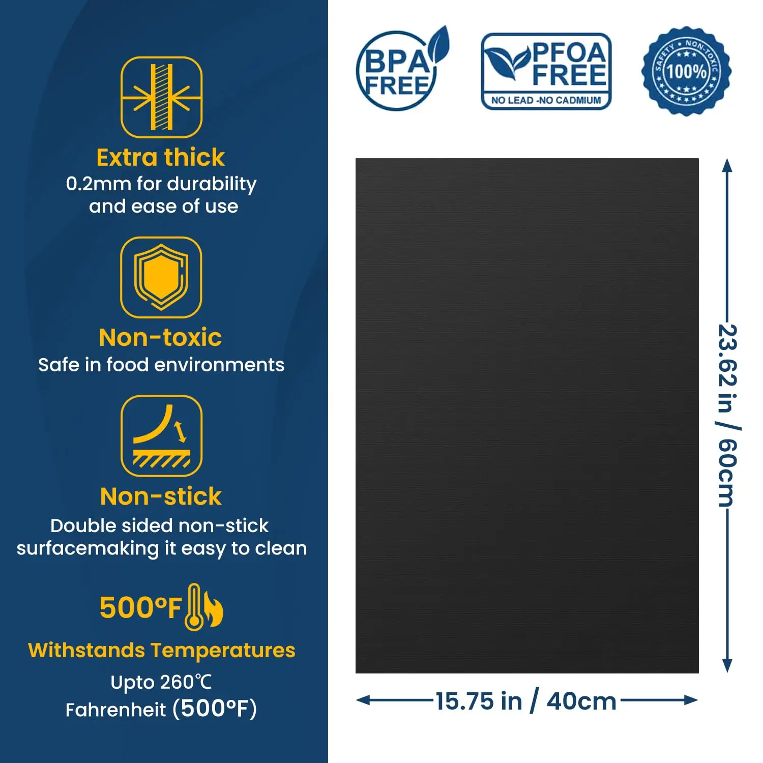 ????【Qualità premium e materiale sicuro】: il nostro tappetino per forno resistente fino a 500°F. CERTIFIED SENZA BPA e PFOA, 30% più pesante rispetto a tutte le altre rivestimenti del forno.Rivestimento in fibra di vetro PTFE premium che può essere utilizzato sopra e oltre di nuovo. E non contiene silicone o altri prodotti chimici pericolosi. Non è un’odore cattivo alle alte temperature.