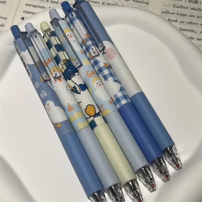 6pcs Kawaii Gel penne materiale scolastico penne anatra carine ST Nib penna a sfera con inchiostro nero torna a scuola cancelleria esteticaDisponibilità: 15 disponibili