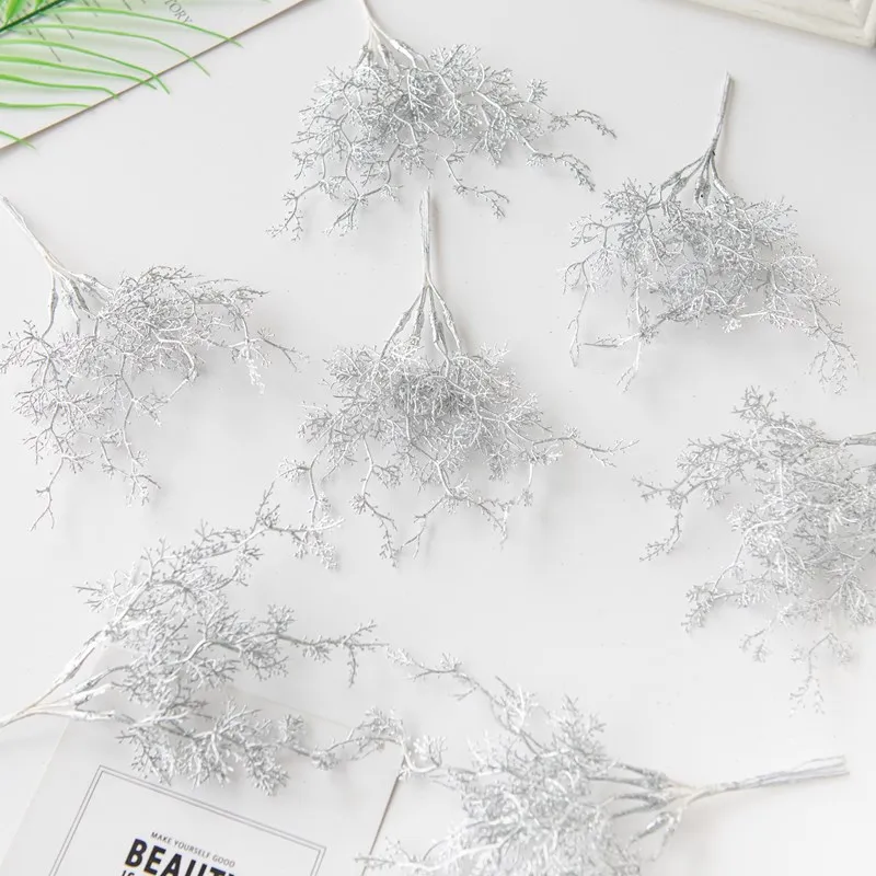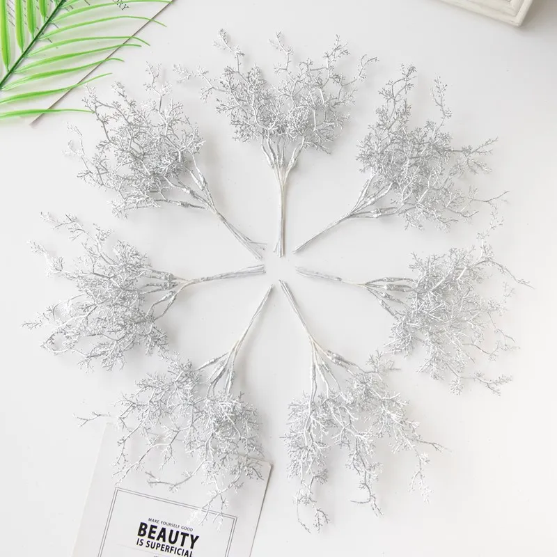6 pezzi di piante artificiali ramo dorato argentato per scrivania da ufficio bonsai ghirlande per albero di Natale accessorio decorazione per arco nuziale domestico