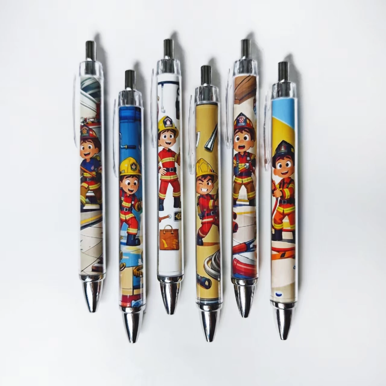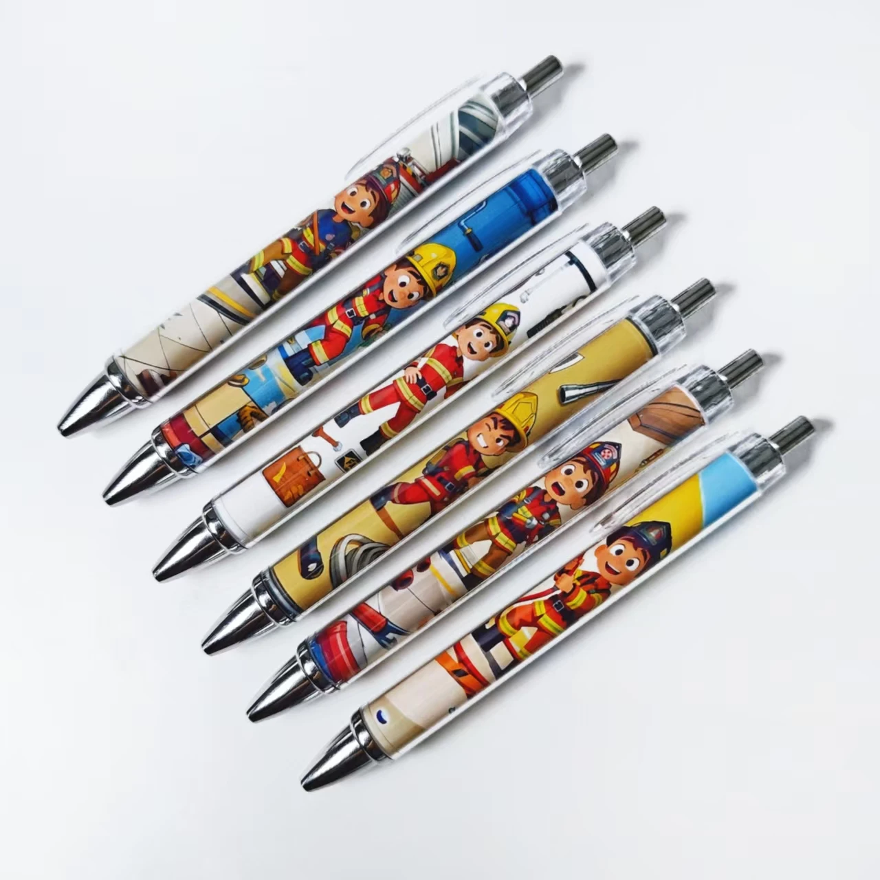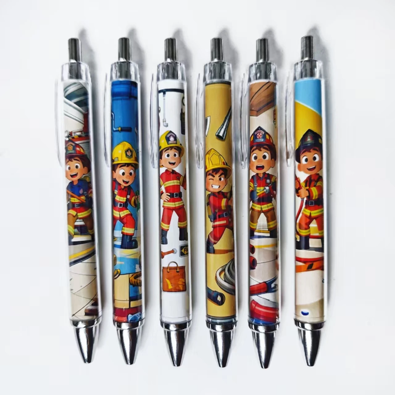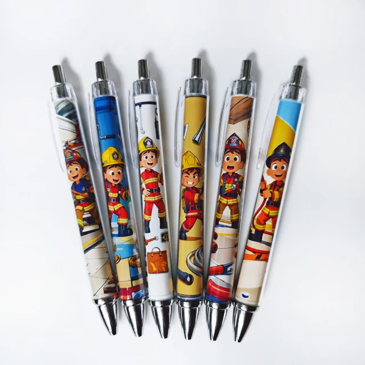 7 pezzi/14 pezzi penne retrattili a tema pompiere penne a sfera pompiere penne regalo di cancelleria per studenti per ufficio quotidiano