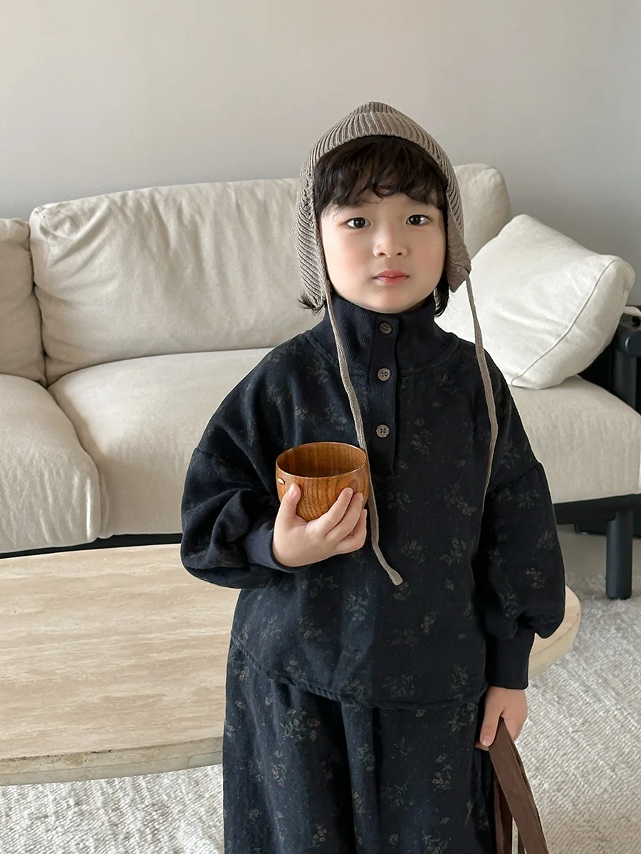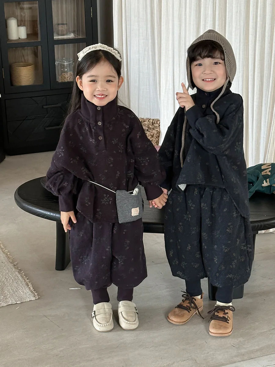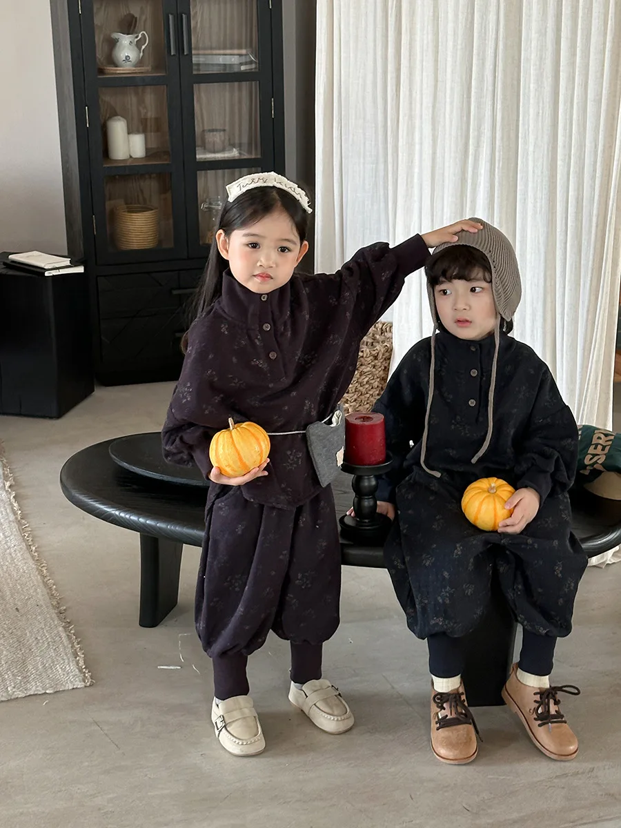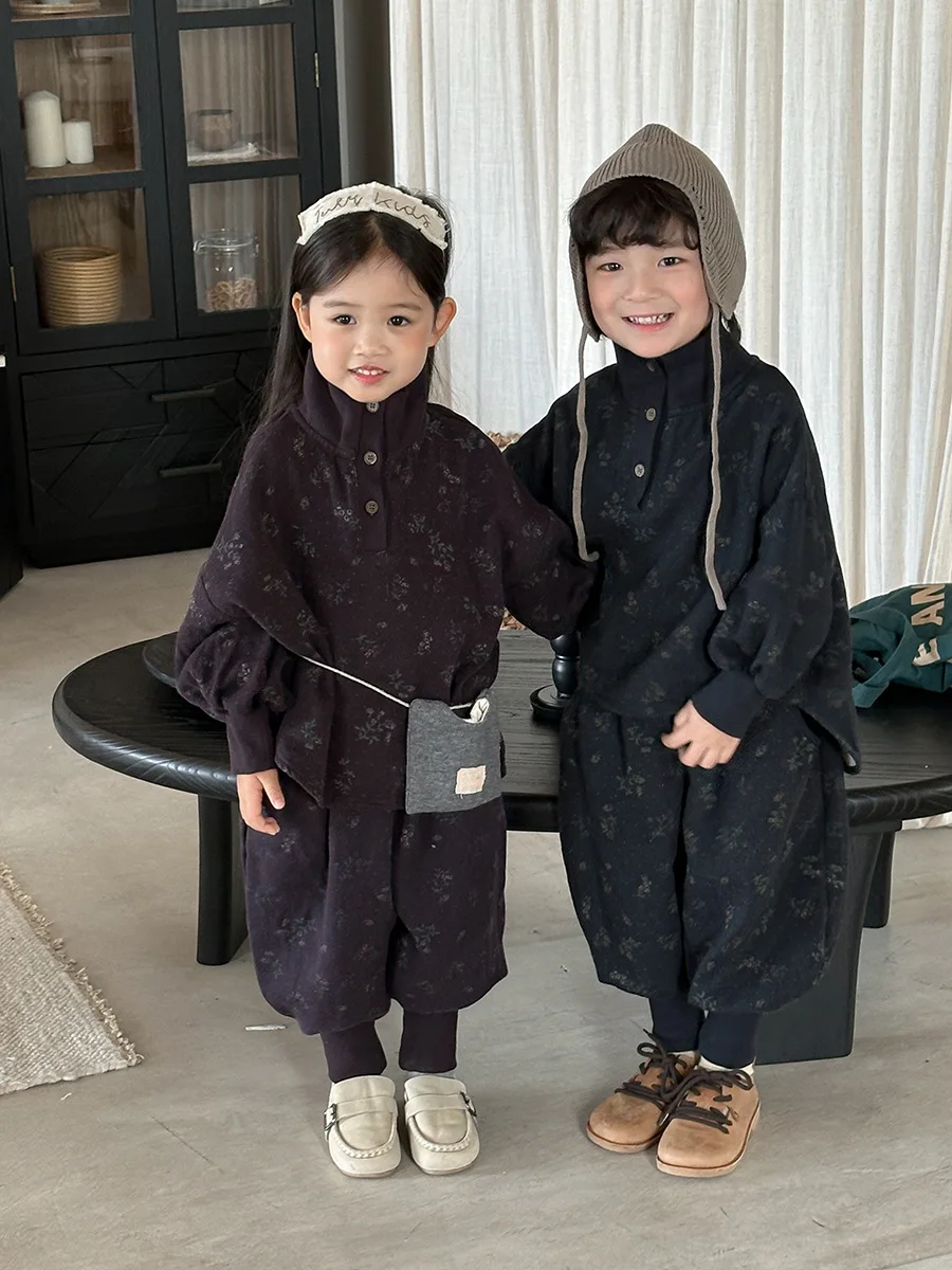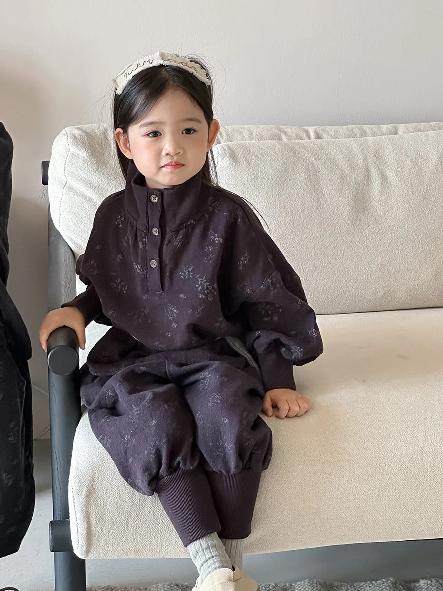 7054 Set di abbigliamento per bambini Abito maglione dolcevita floreale Autunno Inverno 2025 Abito da bambina in due pezzi Maglione + Pantalone