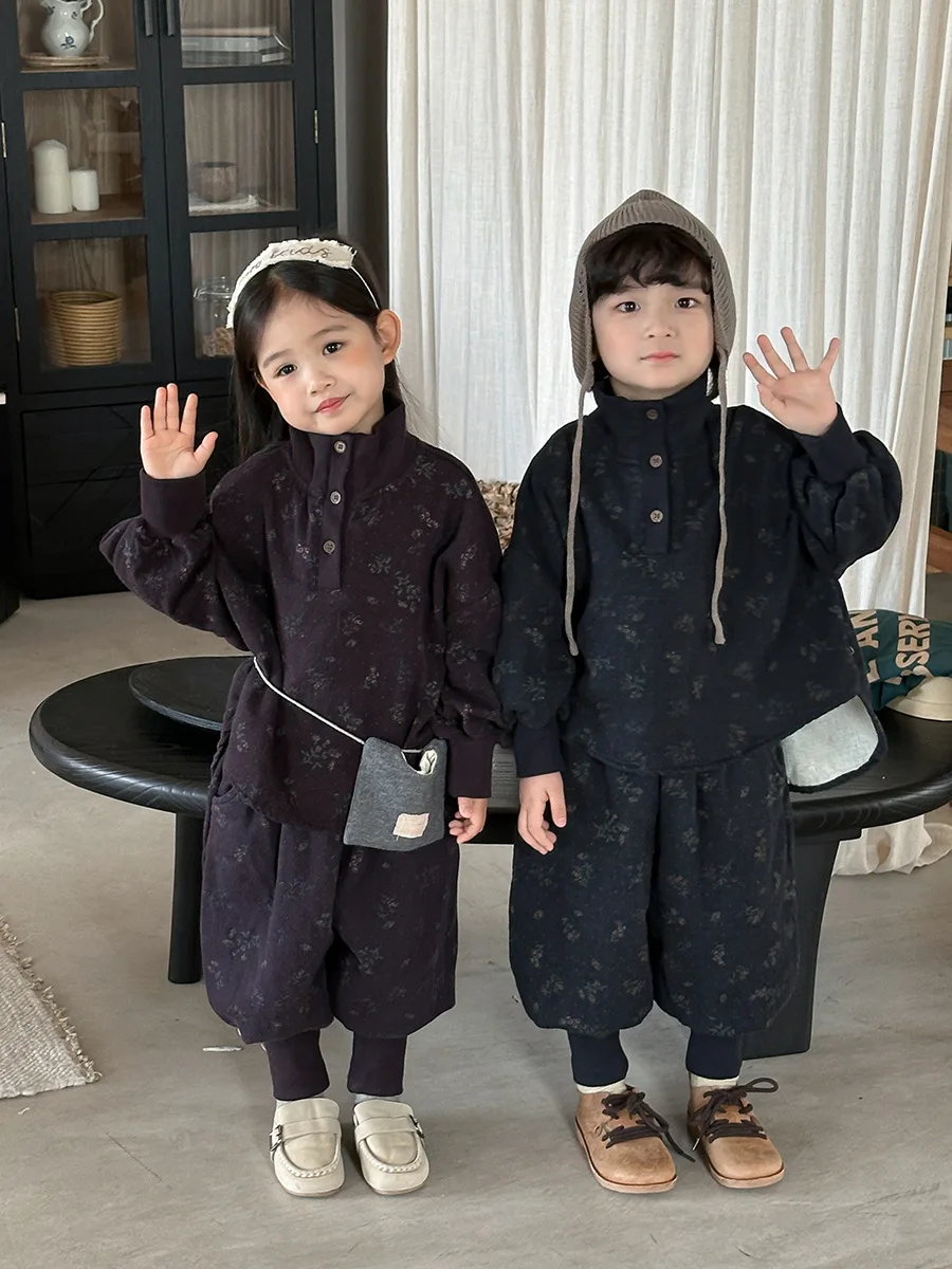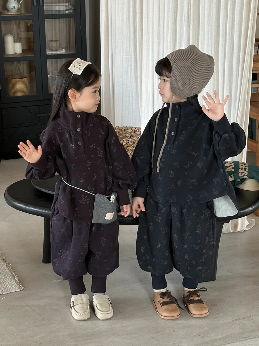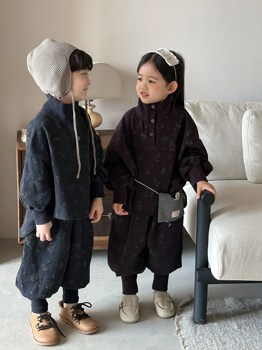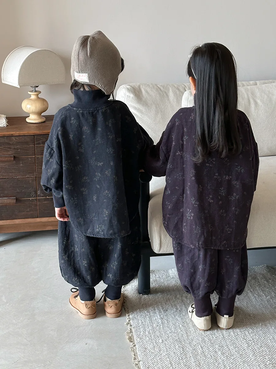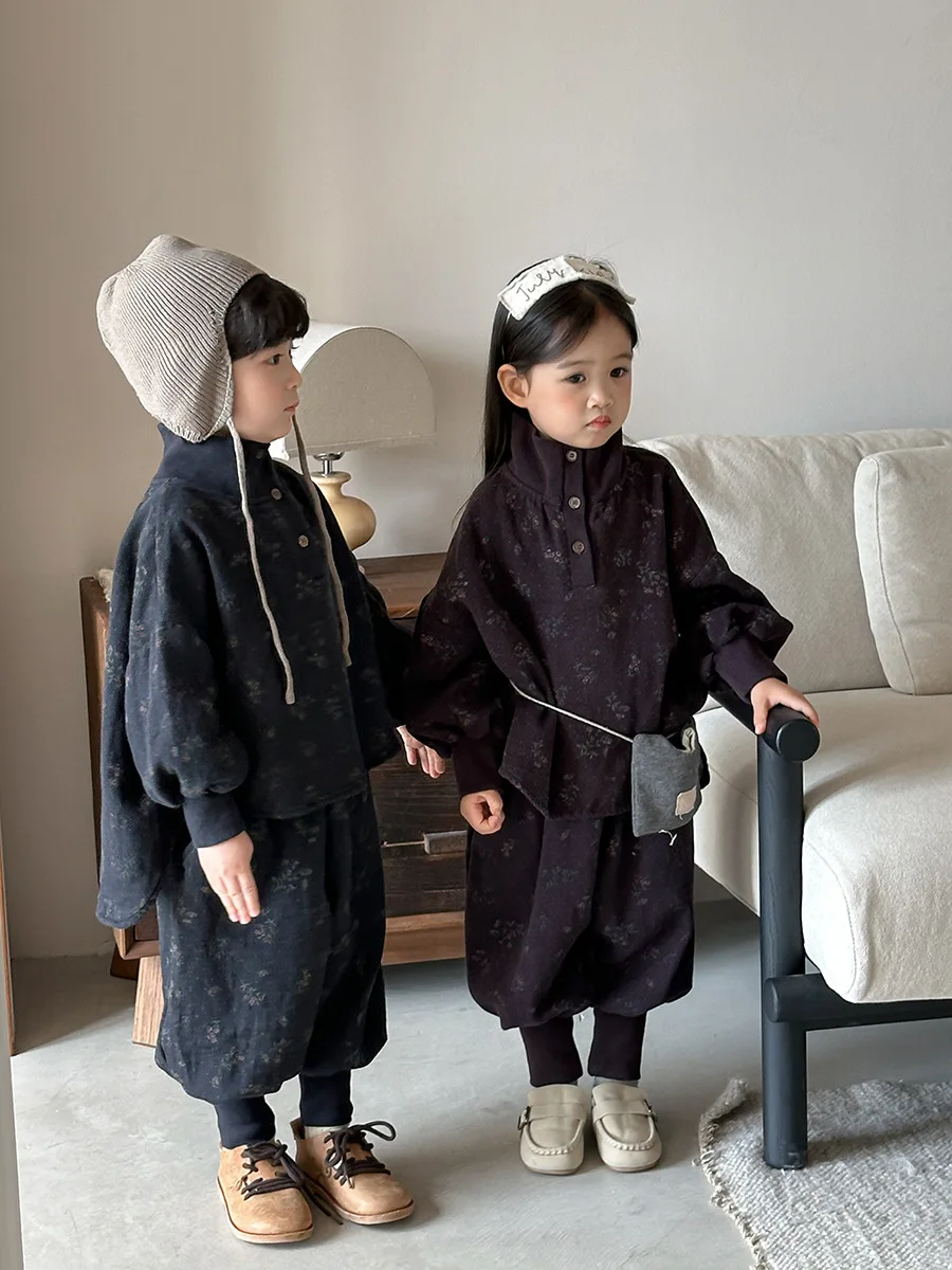 7054 Set di abbigliamento per bambini Abito maglione dolcevita floreale Autunno Inverno 2025 Abito da bambina in due pezzi Maglione + Pantalone
