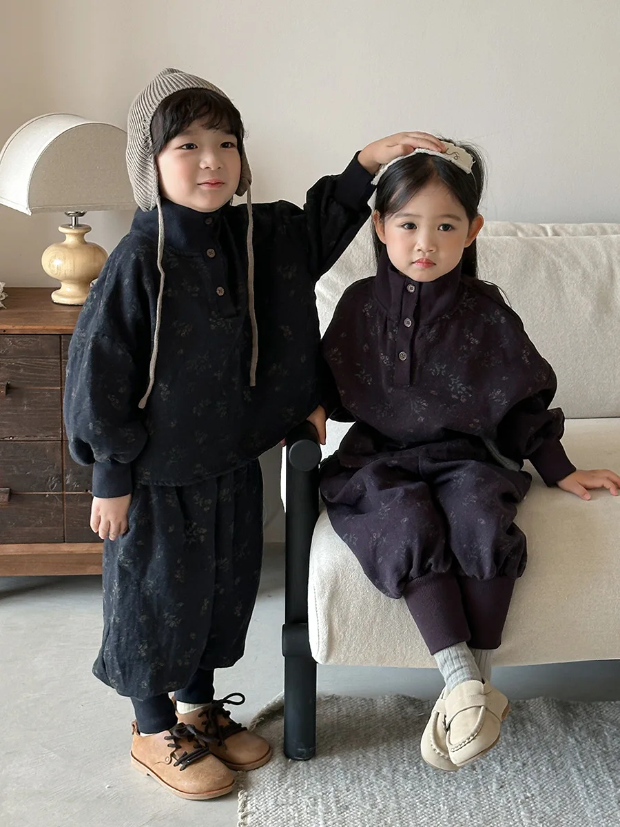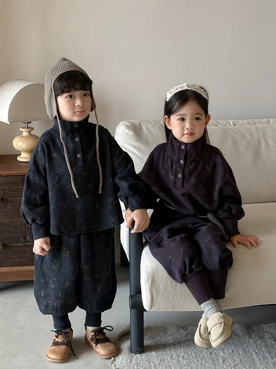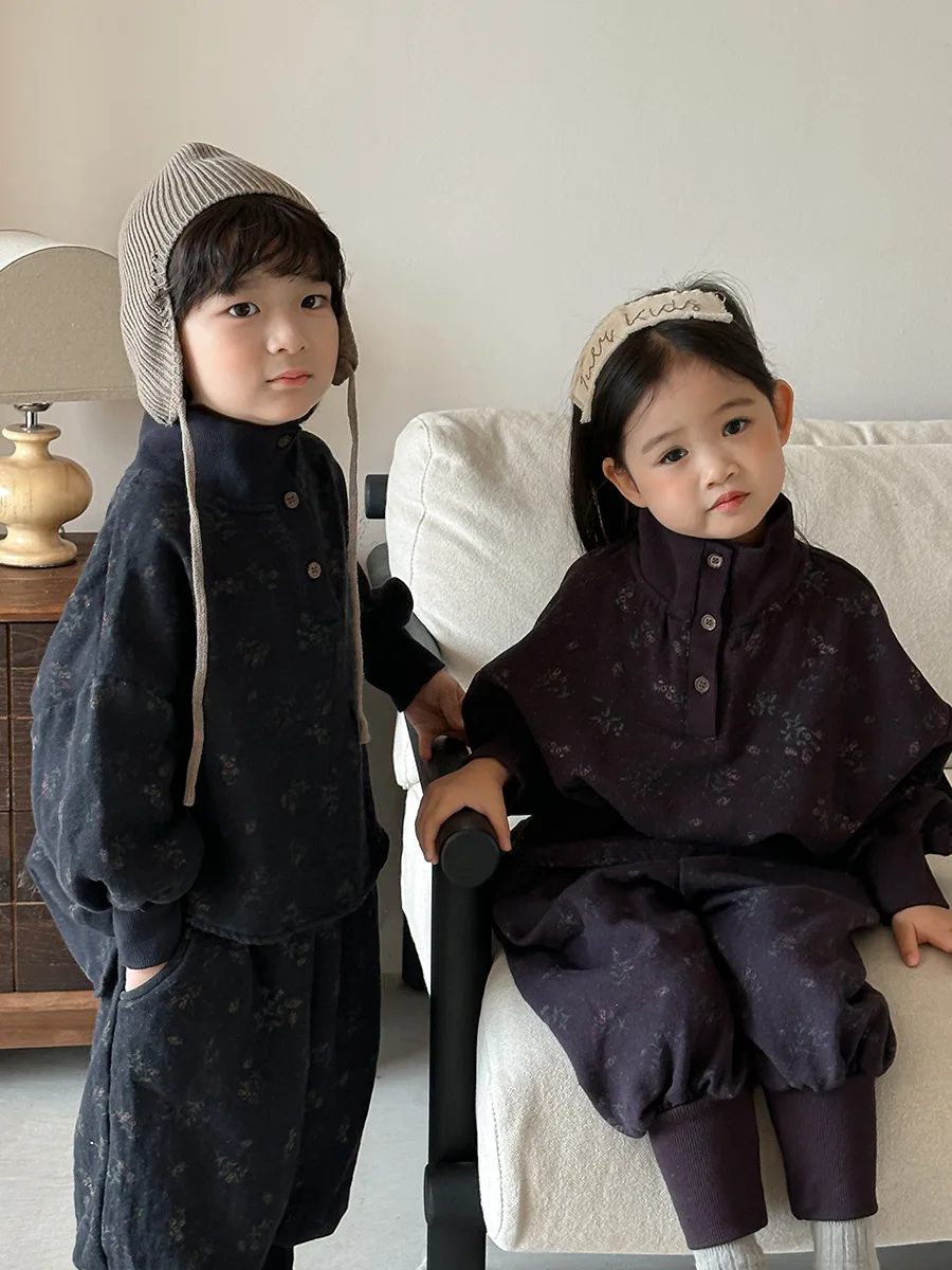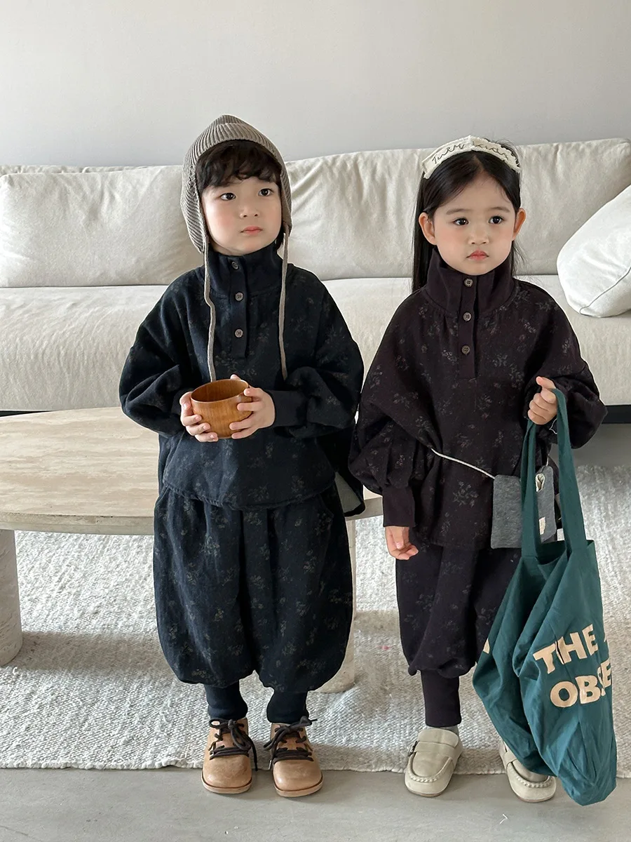7054 Set di abbigliamento per bambini Abito maglione dolcevita floreale Autunno Inverno 2025 Abito da bambina in due pezzi Maglione + Pantalone