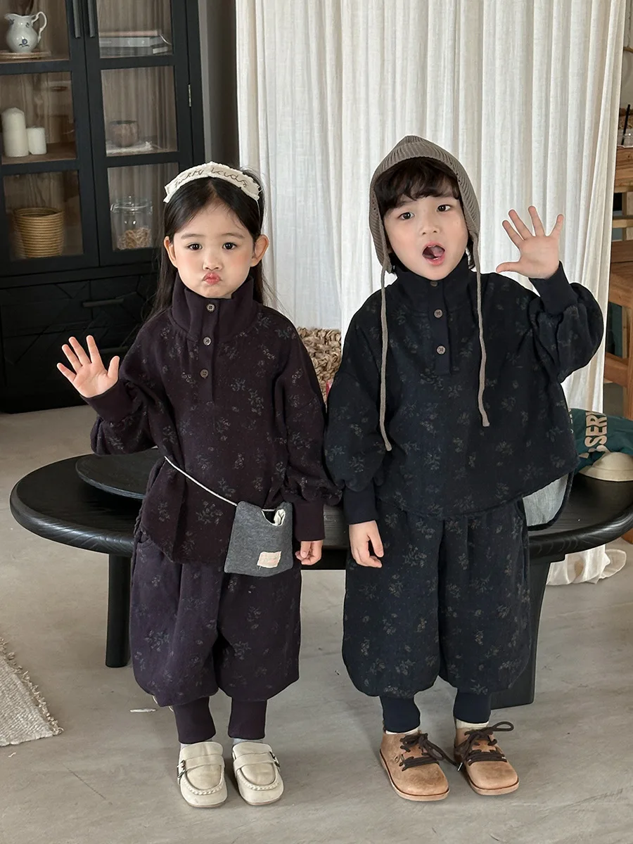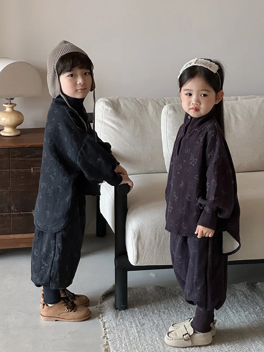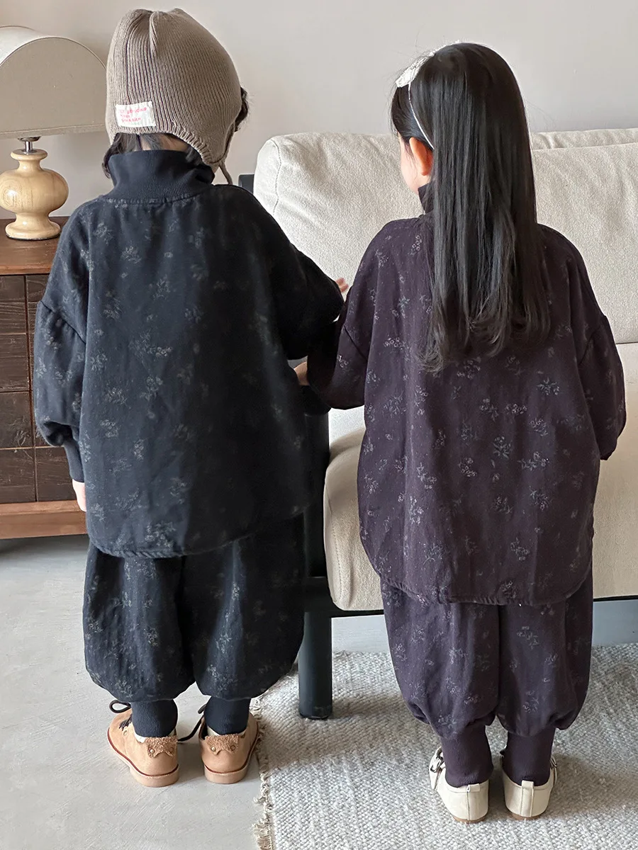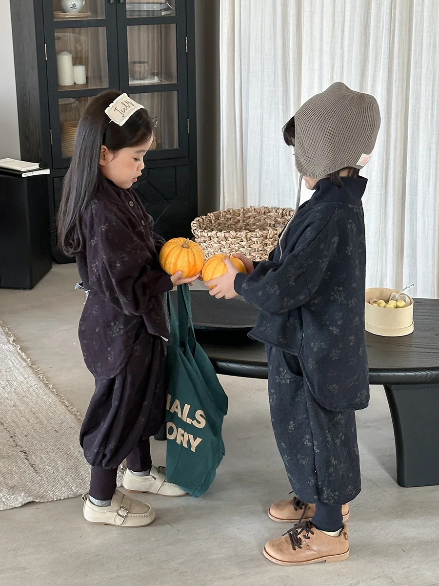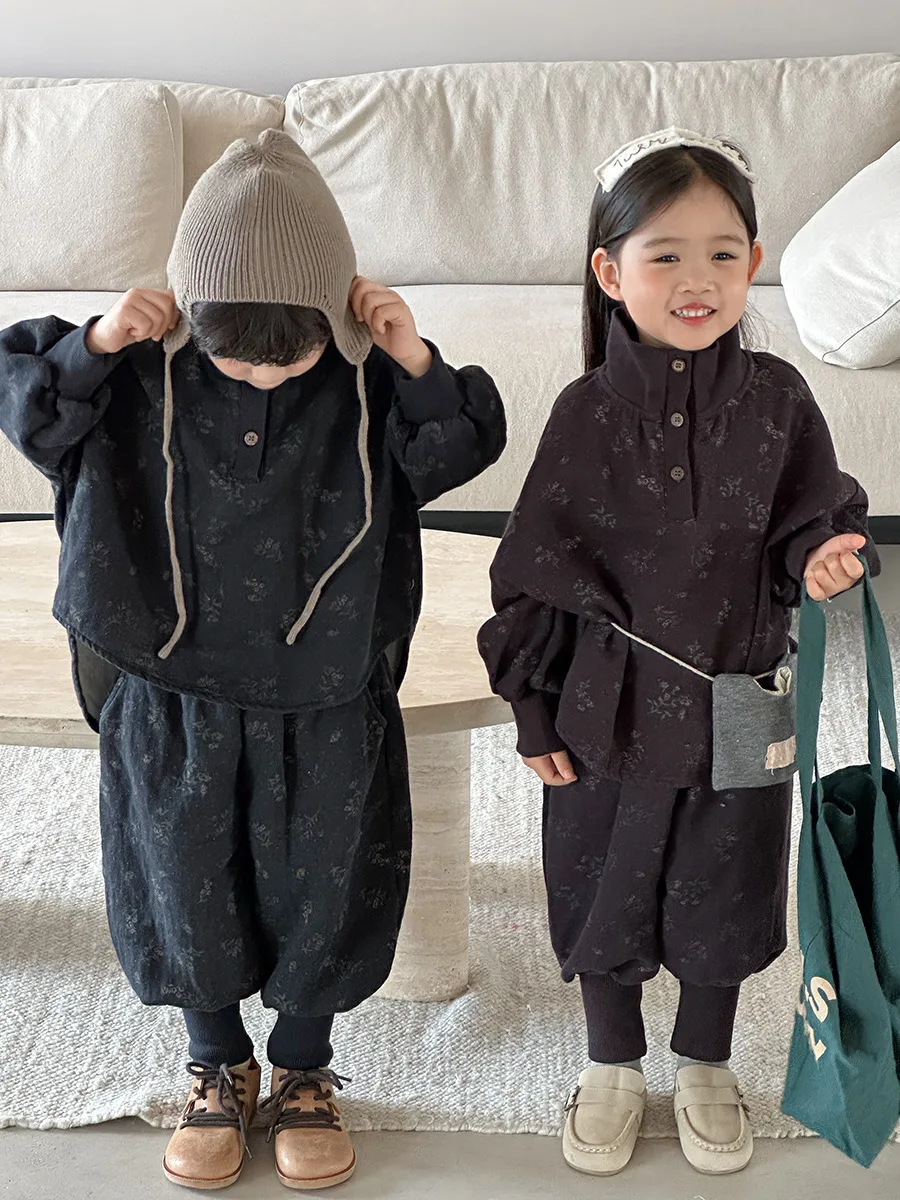 7054 Set di abbigliamento per bambini Abito maglione dolcevita floreale Autunno Inverno 2025 Abito da bambina in due pezzi Maglione + Pantalone