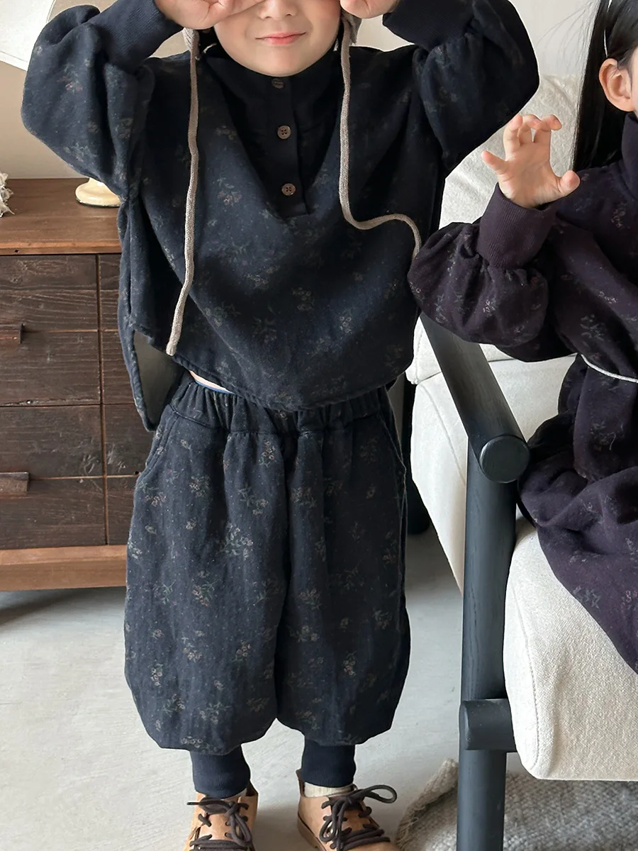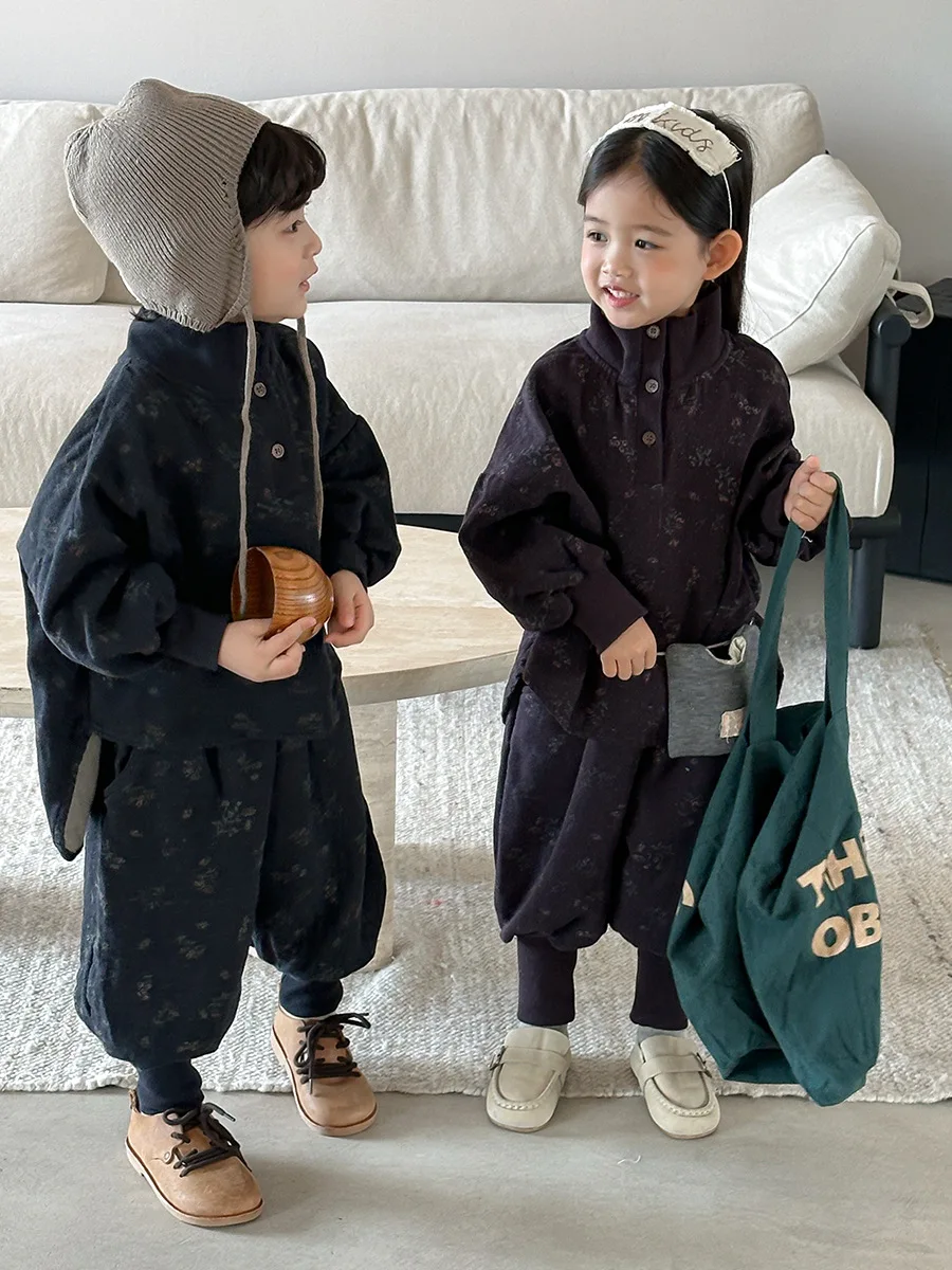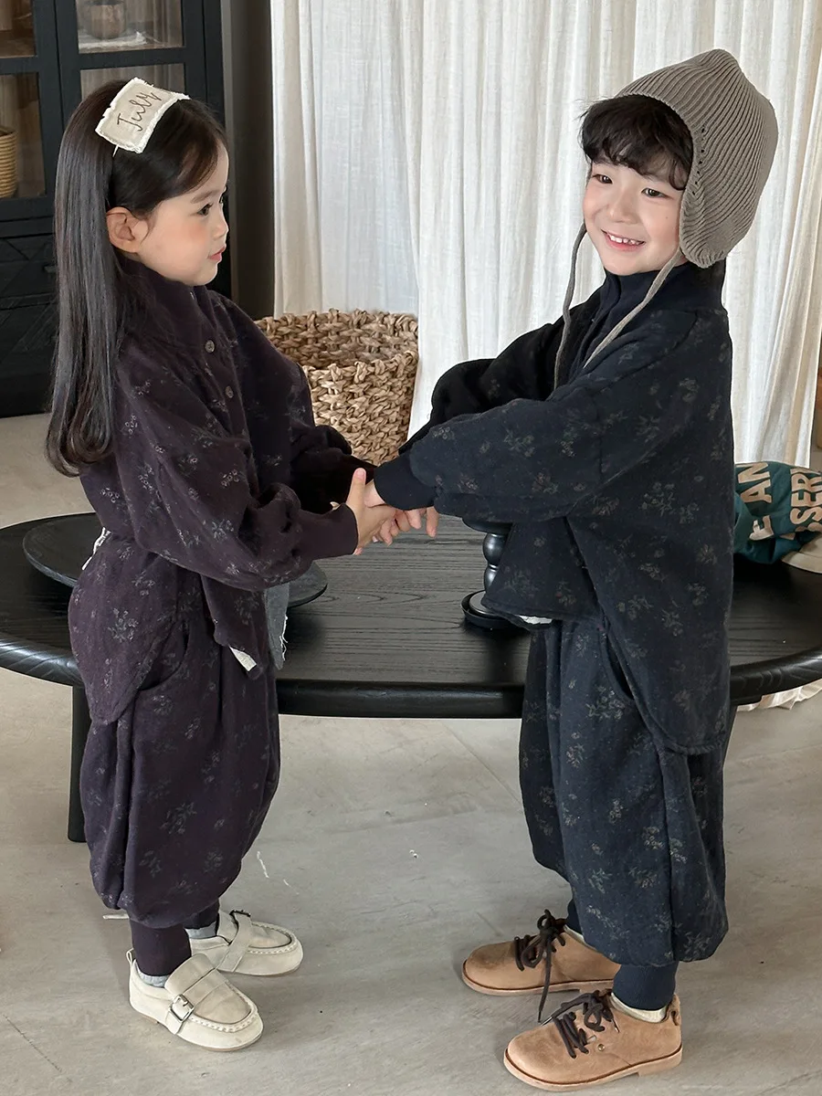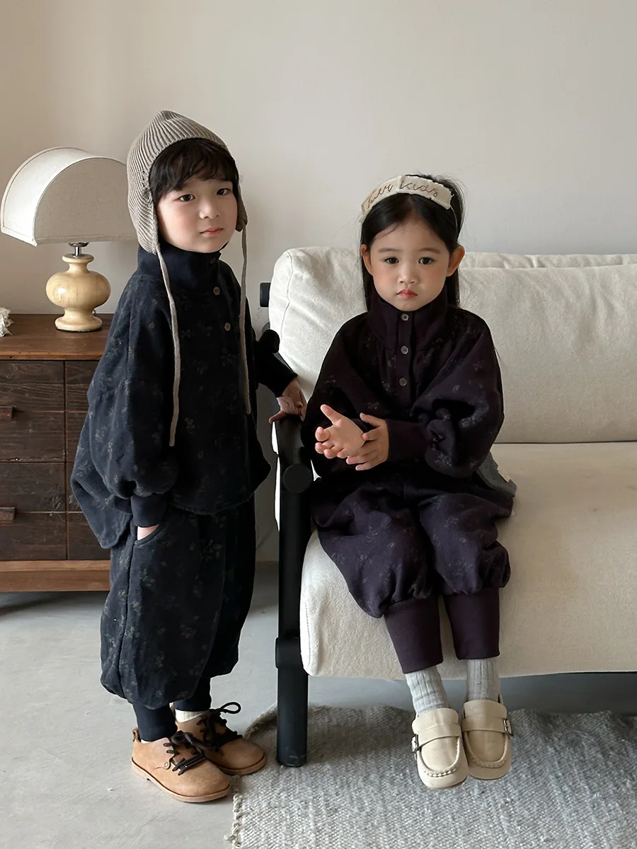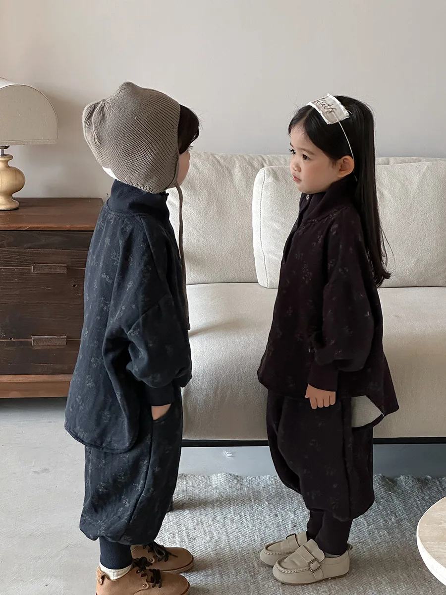 7054 Set di abbigliamento per bambini Abito maglione dolcevita floreale Autunno Inverno 2025 Abito da bambina in due pezzi Maglione + Pantalone