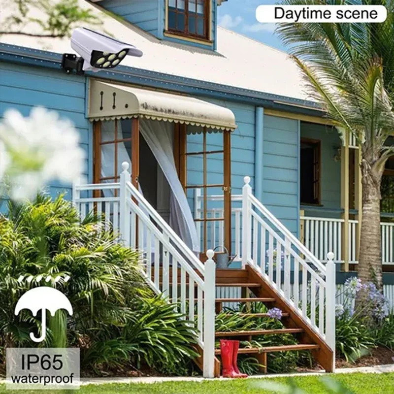 Luce di sicurezza solare 1,2 in 1: mantengono la sicurezza delle proprietà domestiche e gli intrusi lontani.Con 77 LED luminosi e attivi dal movimento, dal design elegante e a basso profilo.Luce di sicurezza fittizia più realistica.