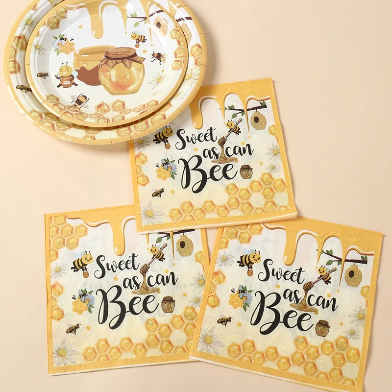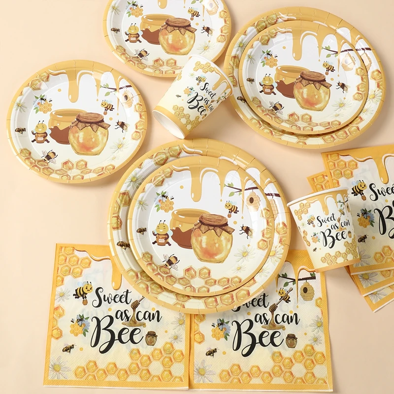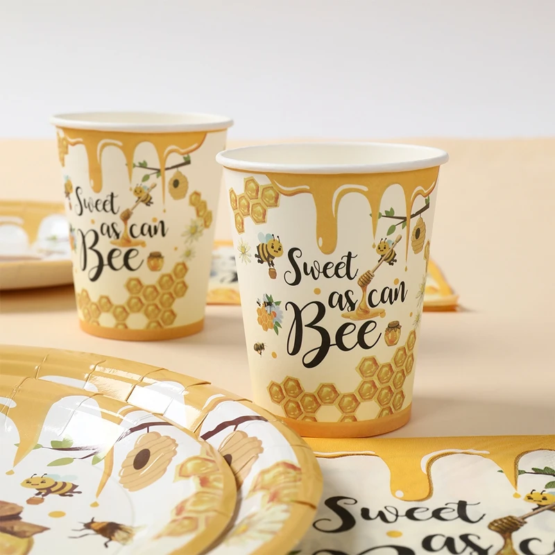 8 pezzi di api miele stoviglie usa e getta cartone animato ape a nido d’ape piatto di carta tovaglioli tazze felice giorno delle api decorazioni per feste di compleanno