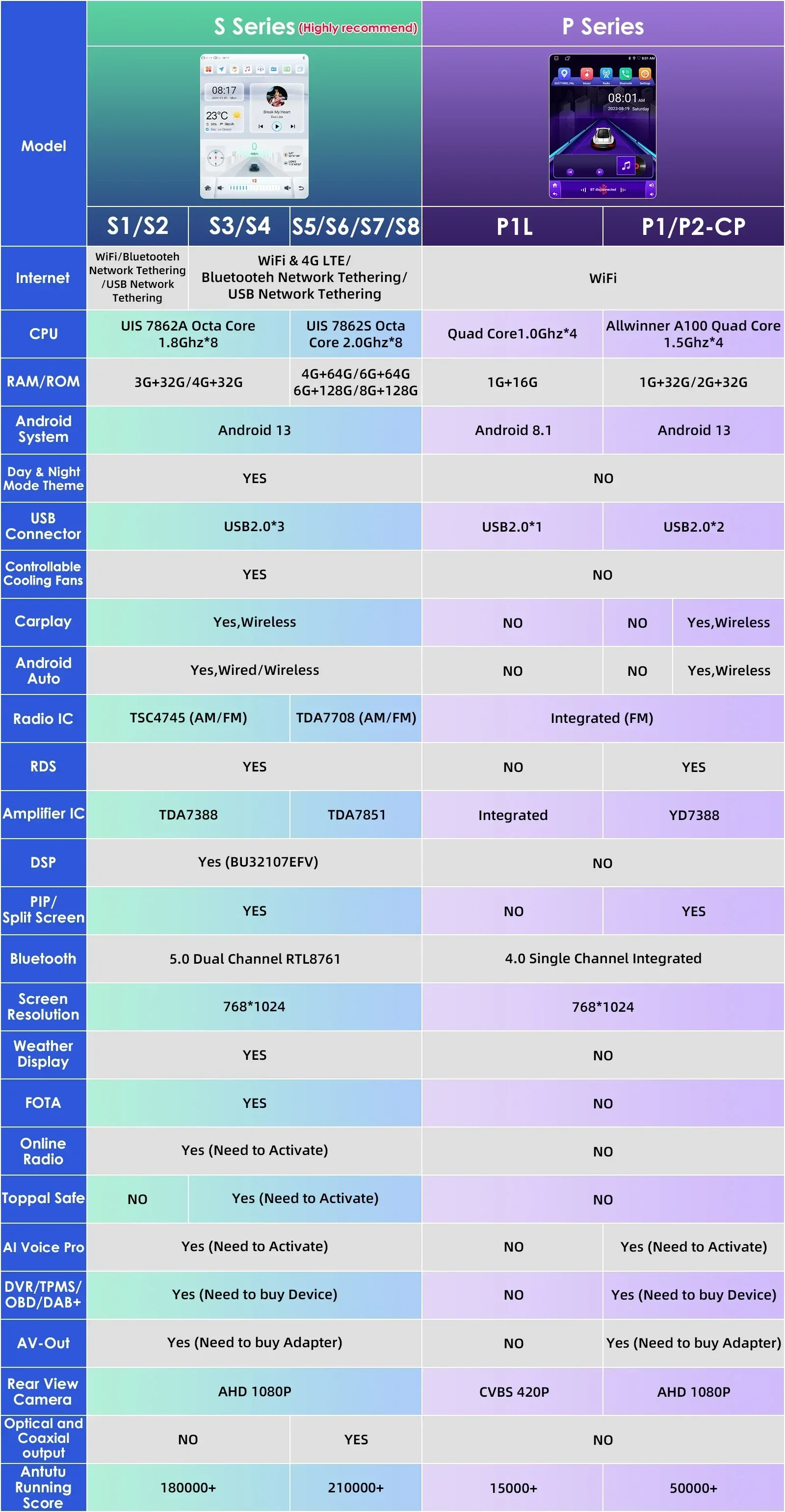 Modelli e anni applicabiliPerRenault Scenic 2013 2014 2015 2016 2017 2018 2019 2020 2021 2022 2023 2024Nota: elenco compatibile solo per riferimento, si prega di confermare la forma e le dimensioni della console certer prima di fare offerte.>Avviso impotente come segue:1 Tutti i prodotti sono stati sottoposti a severi test di qualità prima della spedizione, assicurarsi di alta qualità;2 Scrivi il tuo nome completo e l’indirizzo corretto con il codice postale al momento dell’ordine.3 Si prega di controllare le dimensioni e l’aspetto dell’autoradio originale e il suo elenco compatibile con i dettagli dell’avviso prima di fare un’offerta per evitare errori;se è necessario un altro adattatore per l’installazione che deve essere ordinato separatamente, tranne che la descrizione degli accessori mostra l’immagine.4 il nostro articolo non include le istruzioni di installazione tranne il file di istruzioni della fotocamera posteriore, ma puoi contattarci nella chat dell’ordine se hai bisogno di aiuto per l’installazione;5 È necessaria l’installazione professionale, il negozio di manutenzione dell’auto è la scelta migliore per te;—–>Funzioni di base:Android 13+9.Schermo da 7 pollici + Quad Core 1.2GHZ (Otto core UIS 7862A 1.8Ghz/UIS 7862S 2.0Hhz opzionale)+ DDR3 Flash da 1 GB (2 GB/3 GB/4 GB/6 GB/8 GB opzionale) + Memoria da 16 GB (32 GB/64 GB/128 GB opzionale) + WIFI (rete 4G opzionale)+ Collegamento specchio+ Controllo volante + RDS+DSP ( opzionale )—–>Funzioni speciali:1) Plug and Play:Il cavo di alimentazione della radio è pin-to-pin, facile da installare;2) Carplay/Android Auto integrato:Supporto della versione P2-CP/S1/S4/S6/S8, basta utilizzare il cavo del telefono per collegarlo, stabile e facile da usare;—–>Accessori opzionali:1) Controllo vocale AI:basta dire che la parola di comando controlla la radio senza mani, rendendo la guida più sicura;2) Telecamera DVR ADAS, monitoraggio della pressione dei pneumatici, OBD2, microfono esterno, cavo RCA; 3) Se i connettori del cavo originale dell’auto sono speciali (non gli stessi dei nostri accessori Pin) che devono ordinare un adattatore separato per l’installazione.Questo elenco mostra il modello della serie S, l’immagine dell’altro articolo non viene visualizzata in questo elenco di descrizione, ma puoi controllare i dettagli seguendo la prima immagine per le sue funzioni, scegli il modello che ti serve prima di fare offerte. Intrattenimento intelligente per auto: sistema di controllo vocale AI, guida sicura e apertaModello auto: questa unità si adatta al seguente modello di autoPrima dell’installazione VS Dopo l’installazioneParametri di sistema: fare riferimento alla tabella seguente per la configurazione specifica dei parametriInterfaccia utente: serie S (può essere impostata come modalità giorno e modalità notte o tipo di 12 colori: viola/blu scuro/nero/oro e così via) inclusa S8/ S7/ S6/ S5/ S4/ S3/ S2/ S1 versione; e la serie HCS include la versione P1 / P2-CP.Prestazioni estreme: una nuova generazione di nuova architettura CPU, dotata di due A75, sei A55, versione super performante, facile da gestire con le esigenze quotidiane.Per il modello specifico della CPU fare riferimento alla tabella di configurazione dei prodotti.7862A 1,8 Ghz.Supporto Carplay/Android auto: telefono/musica/mappe/podcast Rendi il tuo viaggio più facile e divertente.supporta carplay wireless, Android Auto cablato, Android Auto wireless (che deve impostare la banda AP dell’hotspot Wi-Fi del telefono cellulare come banda da 5 Ghz).Supporto per Siri (Carplay) e Google Assistant (Android Auto)DSP BU32107EFV integrato: utilizziamo BU32107EFV e DSP IC BD37534FV in prodotti con diverse configurazioni.Per la differenza specificata fare riferimento alla tabella delle configurazioni del prodotto. Chip radio professionale: ricevi una stazione radio più stabile, meno rumore radio, prestazioni più elevate durante la guida.(Utilizziamo 4745, TDA7708 e IC radio integrato in diverse configurazioni di prodotti, per le differenze specifiche fare riferimento alla tabella di configurazione dei prodotti.)Bluetooth 5.0 Doppio canale: connessione Bluetooth stabile e a lunga distanza.Connessione Wi-Fi stabile e a lunga distanza.(Sulla sua interfaccia principale è possibile visualizzare “Visualizzazione della batteria del modello del telefono”)Rete 4G integrata: inserisci la scheda SIM prima di accendere il dispositivo.Include lo slot per schede 4G e l’antenna 4G!3 modi per condividere la rete da iPhone e telefoni AndroidFesta audiovisivaSchermo IPS da 9,7 pollici 768*1024: qualità dell’immagine raffinata, colori reali, adattabile per più scene, per soddisfare le tue esigenzeSistema vocale AI per auto, guida rilassante (è necessario acquistarlo separatamente)(1) Radio onlinecon una connessione dati Internet, puoi ascoltare canali online senza interferenze acustiche rispetto alla radio tradizionale, consentendo al tuo viaggio di godersi la migliore esperienza di ascolto.Personalizza le impostazioni, supporta 20 paesi, aggiungi ai preferiti, trasmissione di qualità., apriremo più stazioni radio nazionali, grazie per il tuo supporto.(2) Antifurtoquesta funzione è supportata solo nella versione 4G (opzioni S3/S4/S5/S7/S8)Gestione del luogo: la funzione di informazioni sulla traiettoria ti consente di controllare la traiettoria di guida del veicolo in un determinato momento sul tuo cellulare.(3) Posizione del parcheggio: la funzione di posizione del parcheggio ti consente di vedere la posizione del tuo veicolo, trovare facilmente il tuo veicolo e puoi impostare una recinzione elettrica per il tuo veicolo, quando il tuo veicolo esce dal raggio di recinzione, invierà un allarme al tuo cellulare.Sicurezza AI: la funzione di sicurezza AI ti consente di controllare l’allarme della recinzione elettrica e puoi anche scattare un’immagine dal DVR quando il dispositivo è acceso per vedere cosa c’è nelle vicinanze de