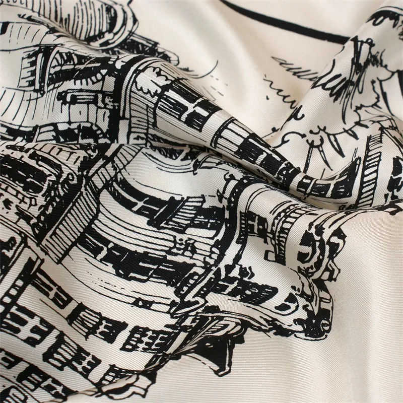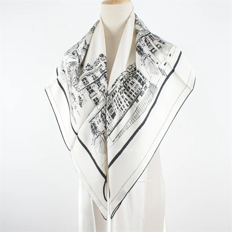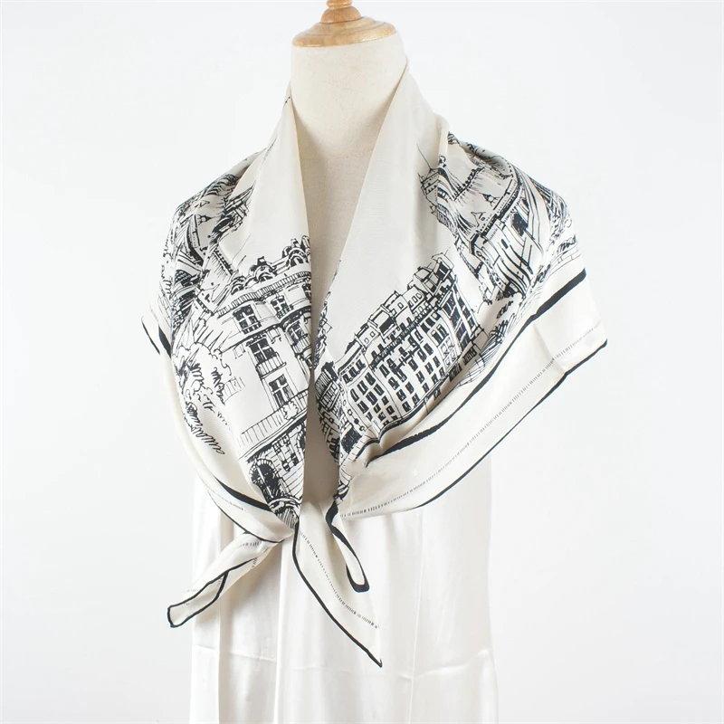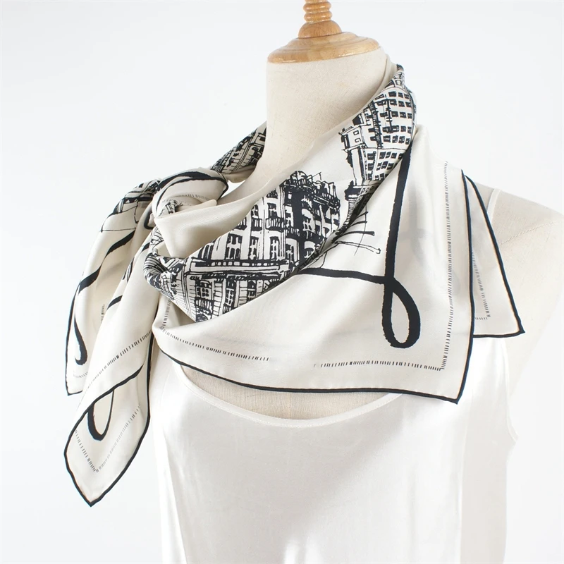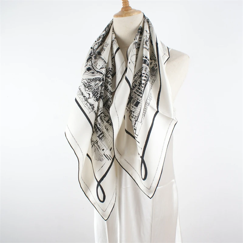 90 sciarpa di seta fazzoletto da collo classico nero bianco stampato moda donna 100% sciarpe di seta avvolge scialle