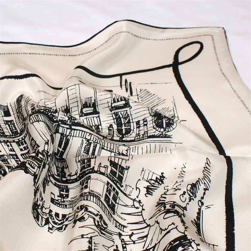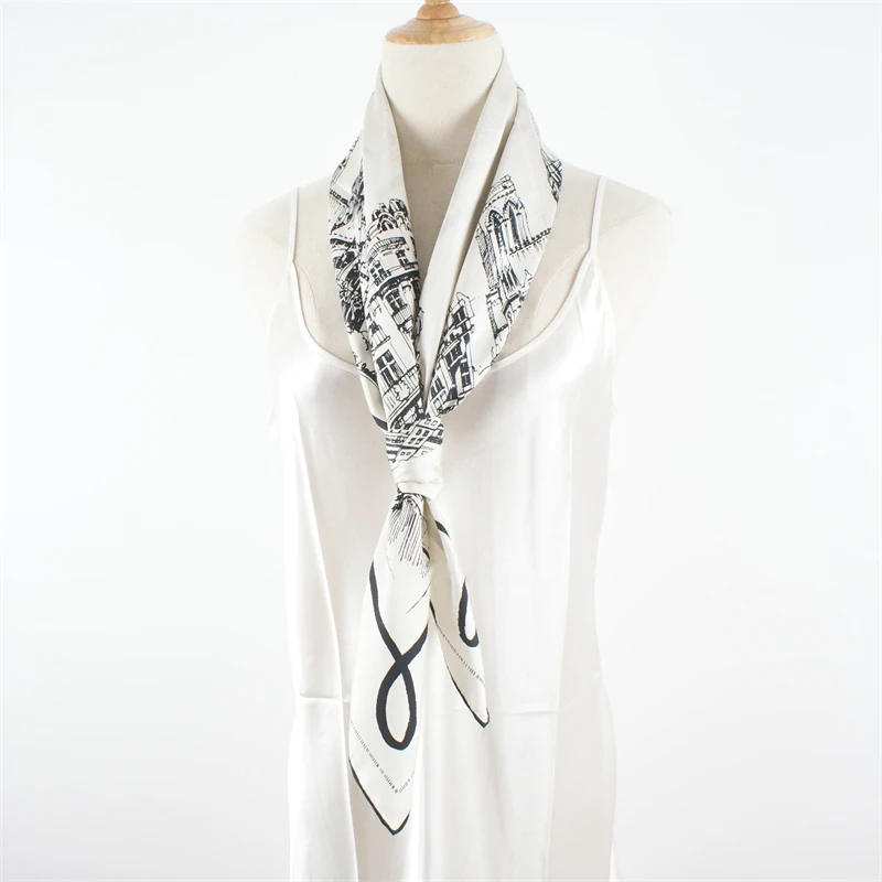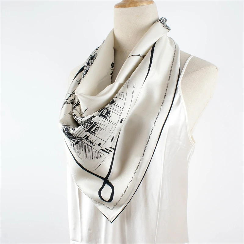 90 sciarpa di seta fazzoletto da collo classico nero bianco stampato moda donna 100% sciarpe di seta avvolge scialle 190 sciarpa di seta fazzoletto da collo classico nero bianco stampato moda donna 100% sciarpe di seta avvolge scialle