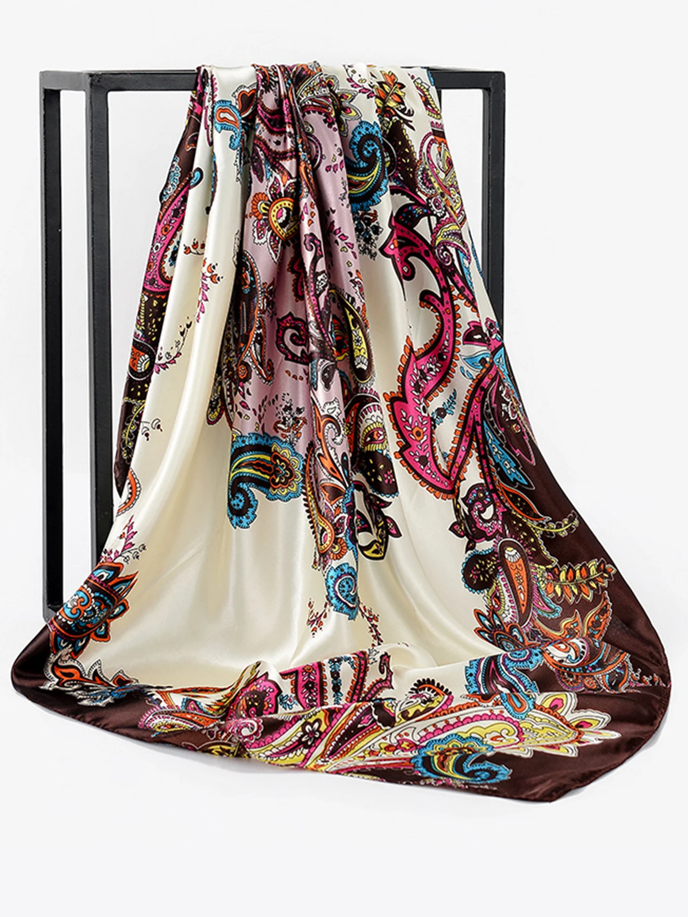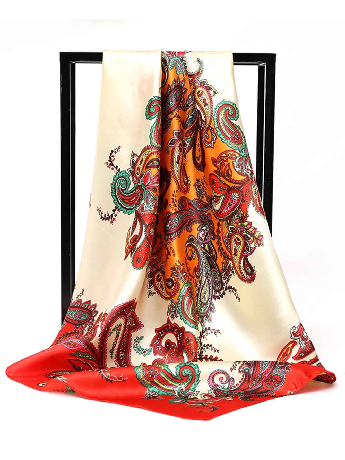 5 recensioni per 90*90 cm Piazza Sciarpe di Seta Donne Scialli Hijab Moda Anacardi Stampa Fiore Fazzoletto Femme Testa Sciarpa Foulard Bandana Spiaggia Pareo