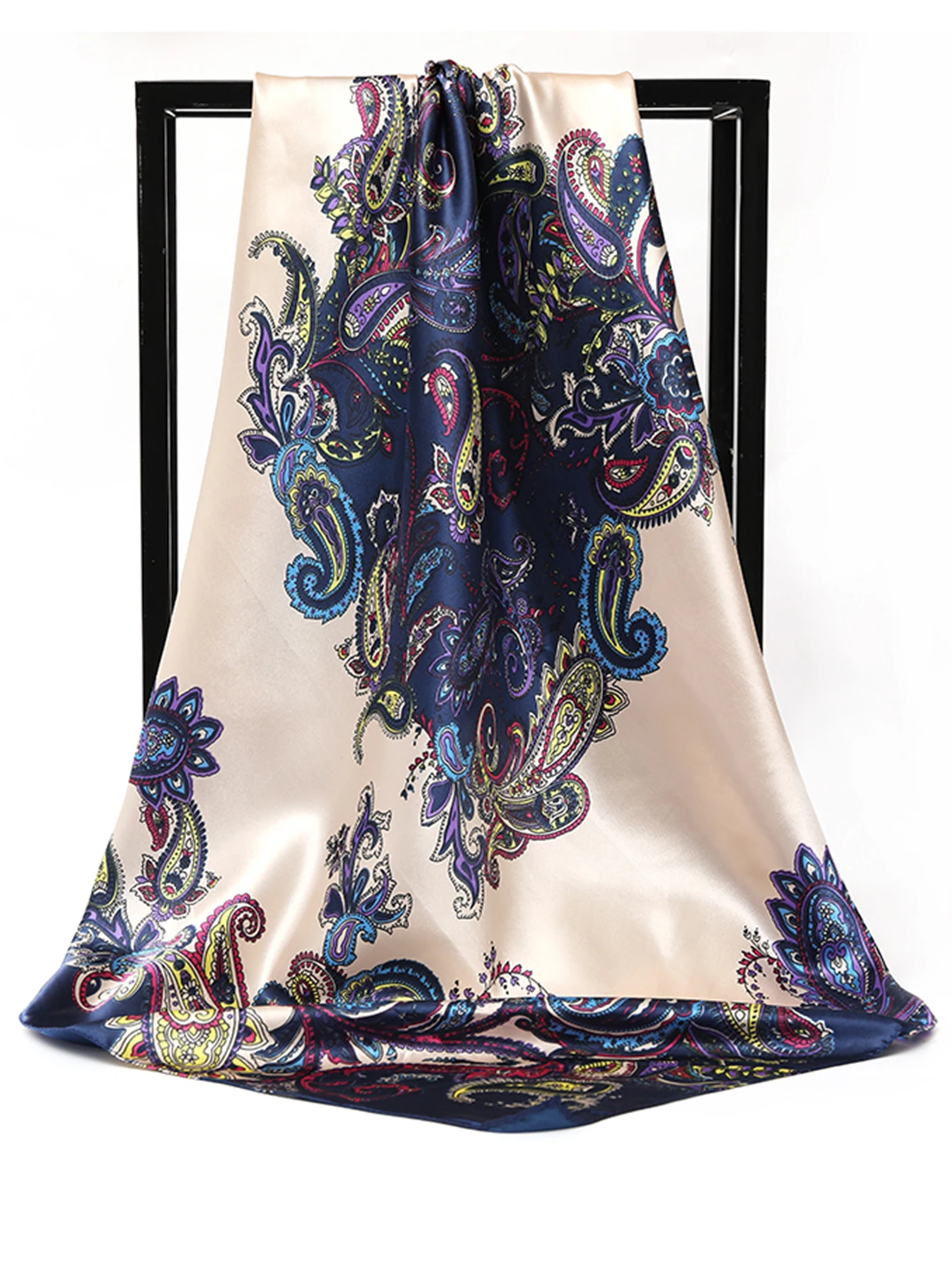 90*90 cm Piazza Sciarpe di Seta Donne Scialli Hijab Moda Anacardi Stampa Fiore Fazzoletto Femme Testa Sciarpa Foulard Bandana Spiaggia Pareo