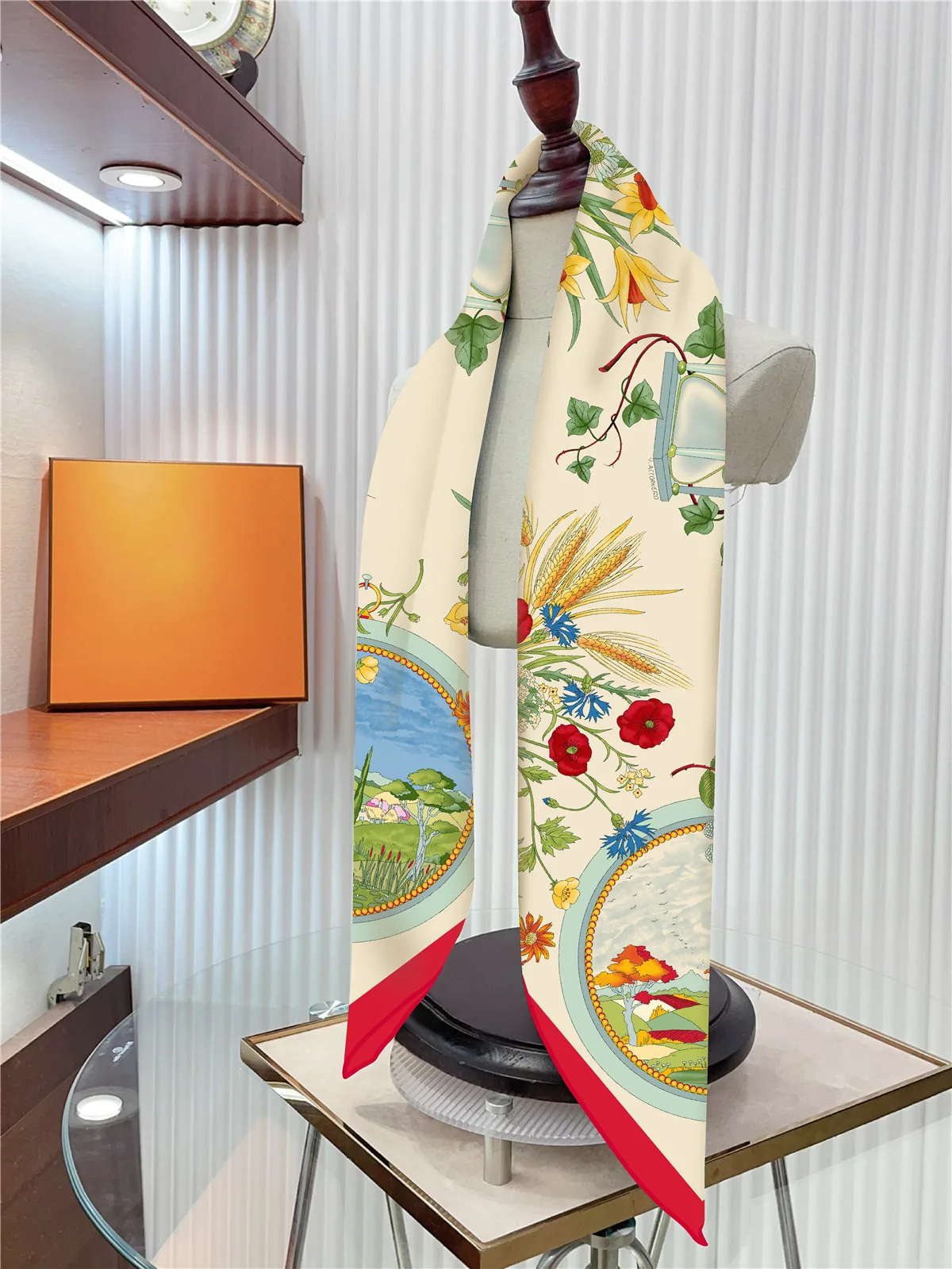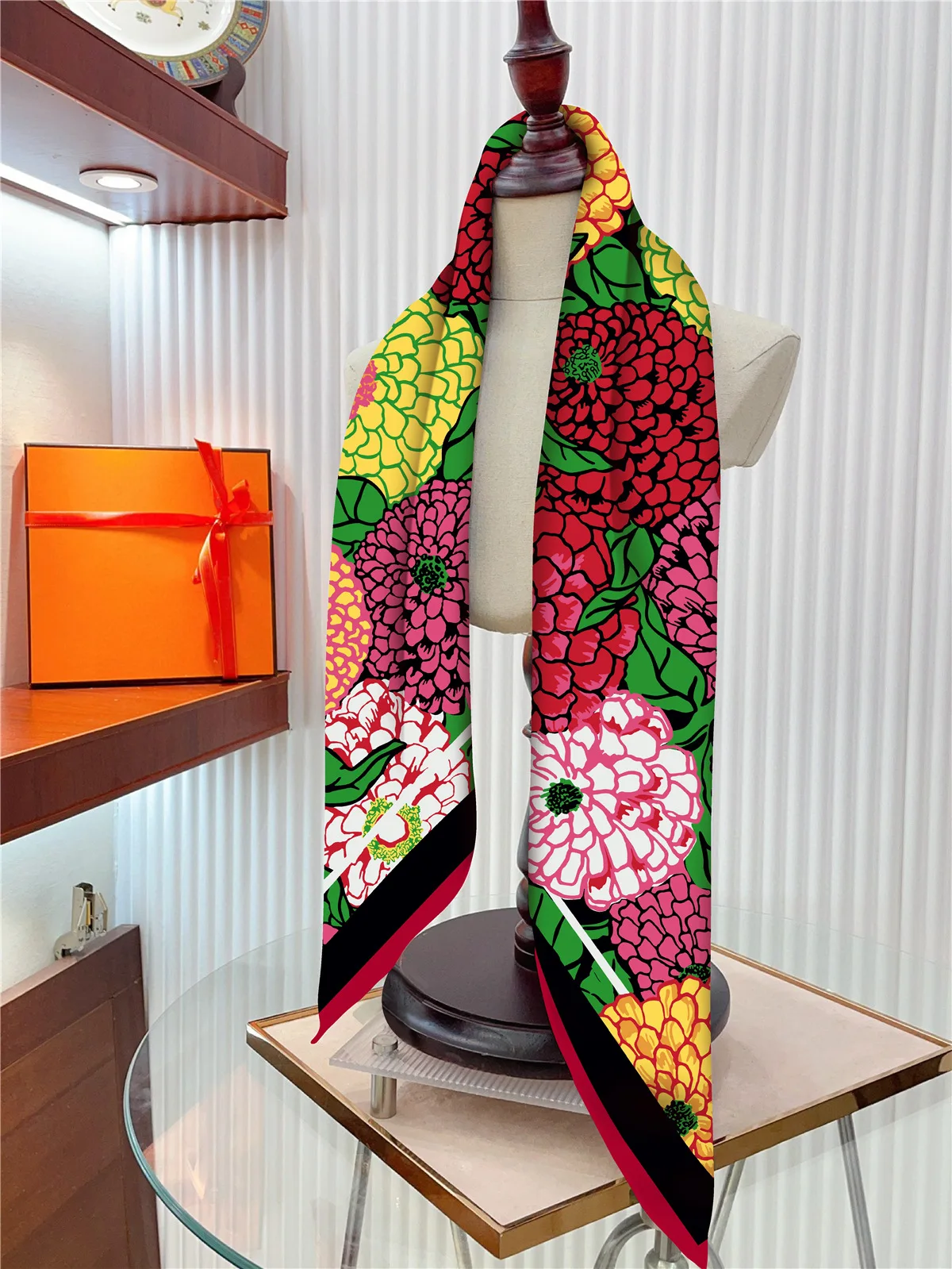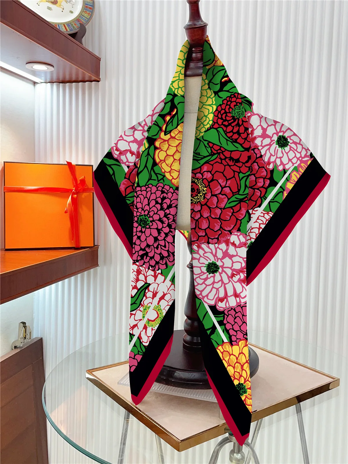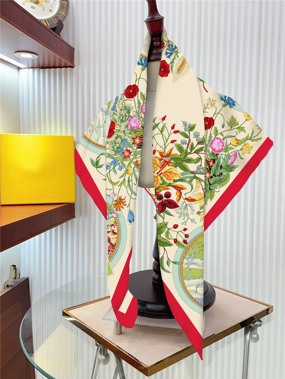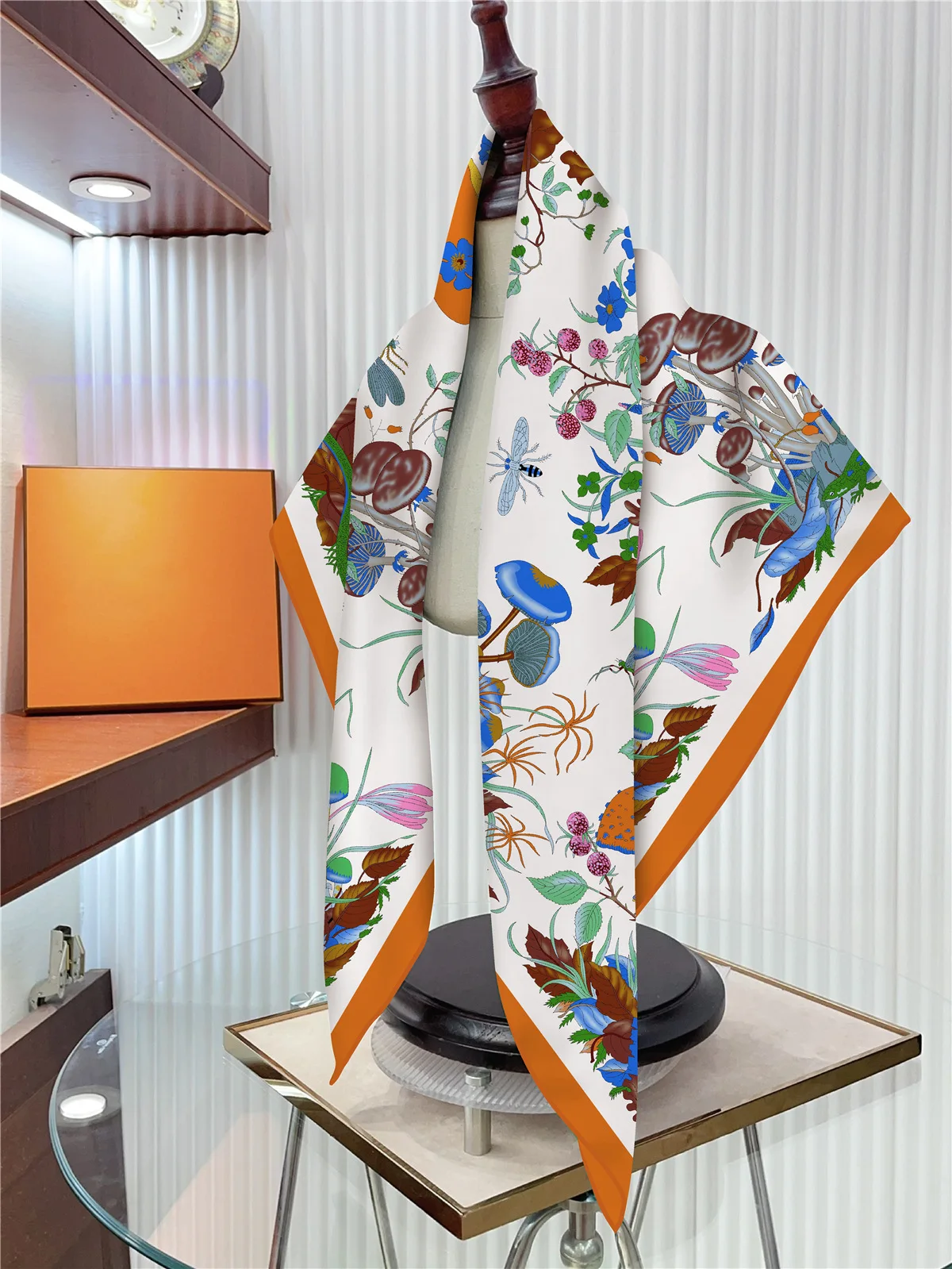 90CM sciarpa di seta donna piante fiori stampa sciarpe quadrate testa Echarpes foulard Femme avvolge scialle da spiaggia Bandana Lady Hijab