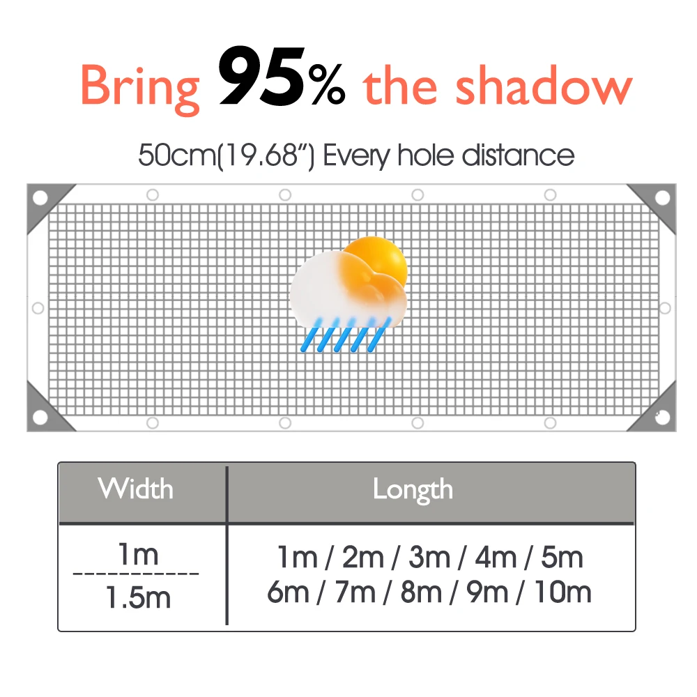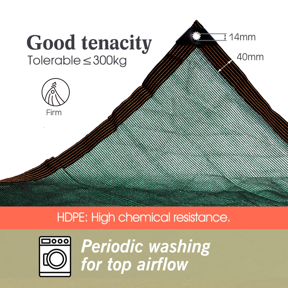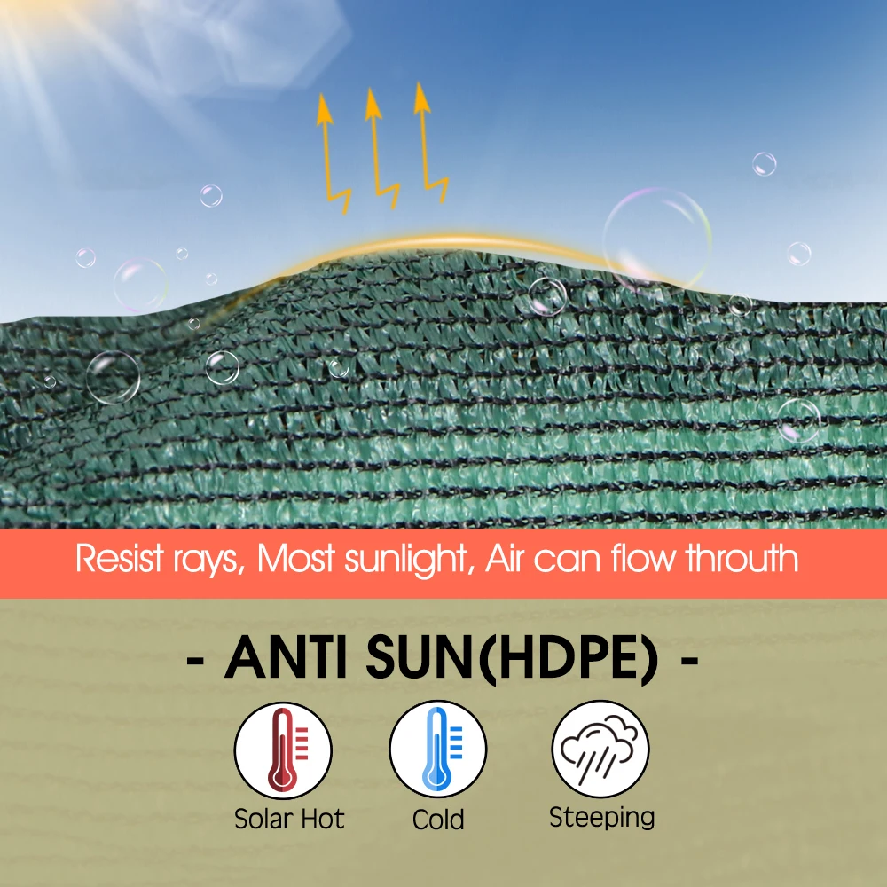 -95% tasso di ombra: il nostro panno ombreggiante può resistere ai raggi e alla maggior parte della luce del sole mentre l’aria può ancora scorrere in modo da creare un luogo confortevole e fresco per persone o piante. Solo piccoli raggi di luce solare potrebbero penetrarlo, piccole quantità di luce solare possono fornire luce o luce solare di cui le piante hanno bisogno