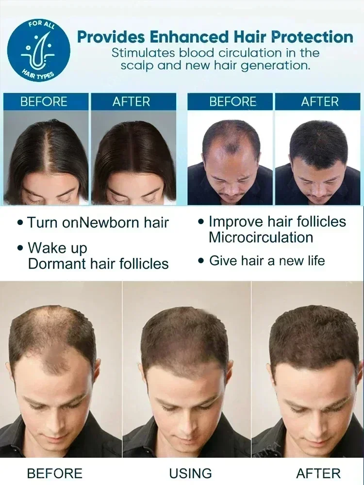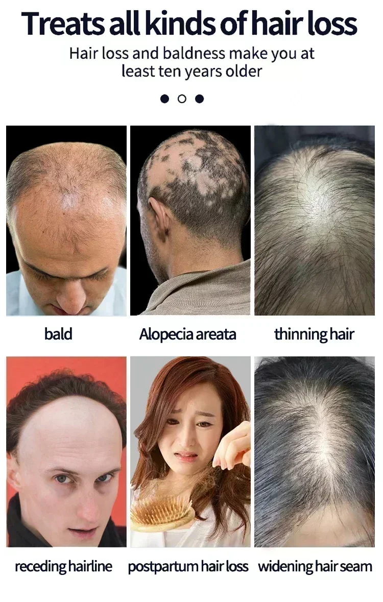 È adatto per alopecia seborroica, attaccatura dei capelli verso l’alto, caduta dei capelli dopo il parto, calvizie, ampliamento dell’attaccatura dei capelli, caduta dei capelli antistress, ecc.