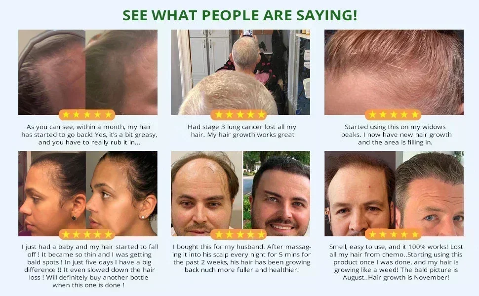 Crescita rapida dei capelli Olio per la crescita dei capelli Efficace riparazione della calvizie Perdita di capelli ereditaria Perdita di capelli dopo il parto Capelli seborroidi Anti perdita