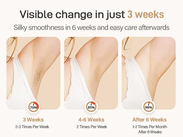 Dotato di intensa luce pulsata che consegne max 22J con uscita energetica efficace e luce flash, depilazione IPL porta 80% di riduzione della radice dei capelli entro 2 settimane con uso consistente.Esperienza la riduzione dei capelli al 97% in 3 settimane, include gambe, braccia, ascelle, linea bikini e anche per il tuo viso.