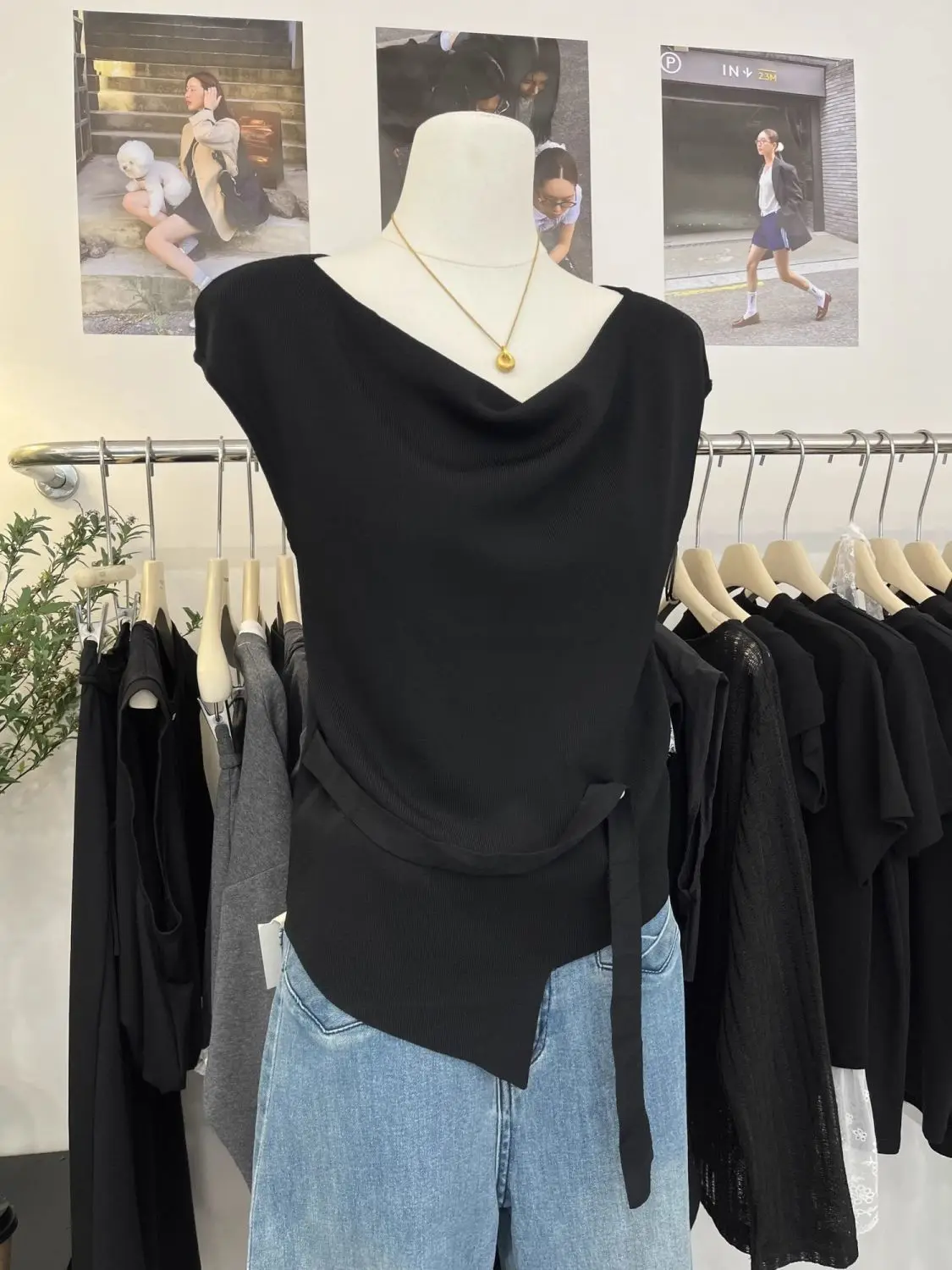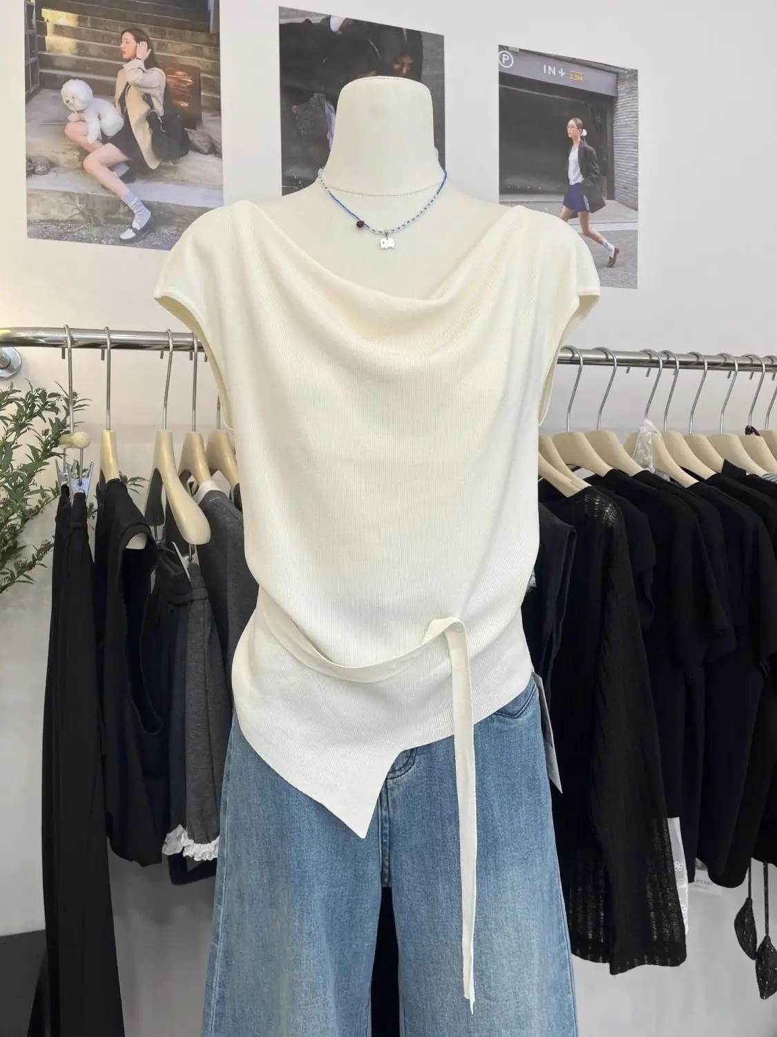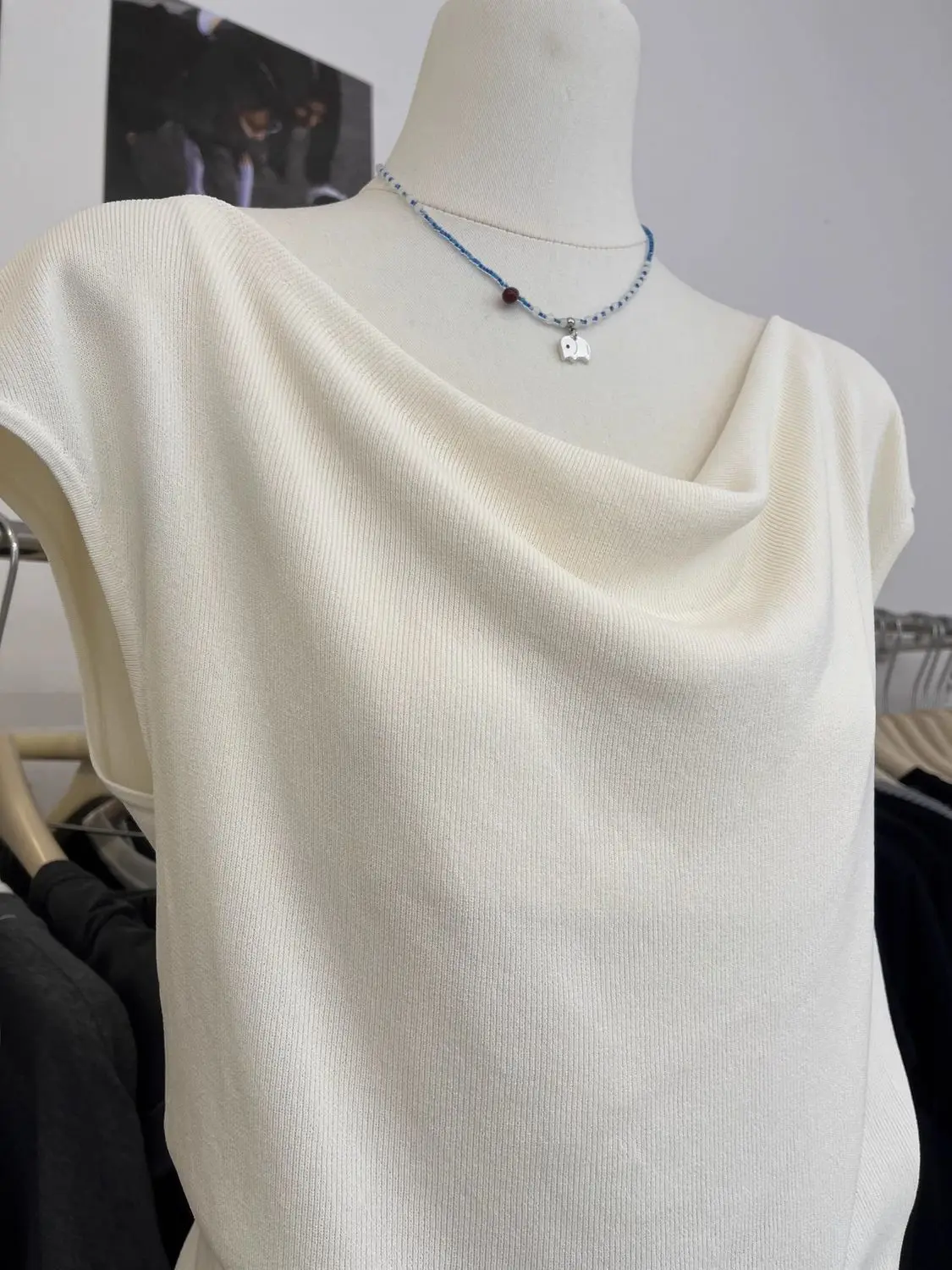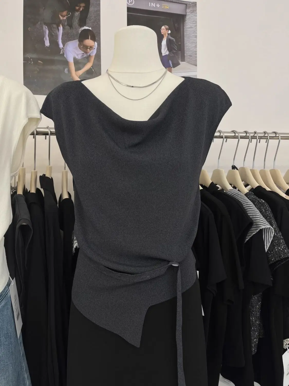 Abbigliamento da donna Camicie lavorate a maglia con maniche volanti piccole Estate Due modi di indossare T-shirt eleganti Lady Slash Neck Top chic irregolari