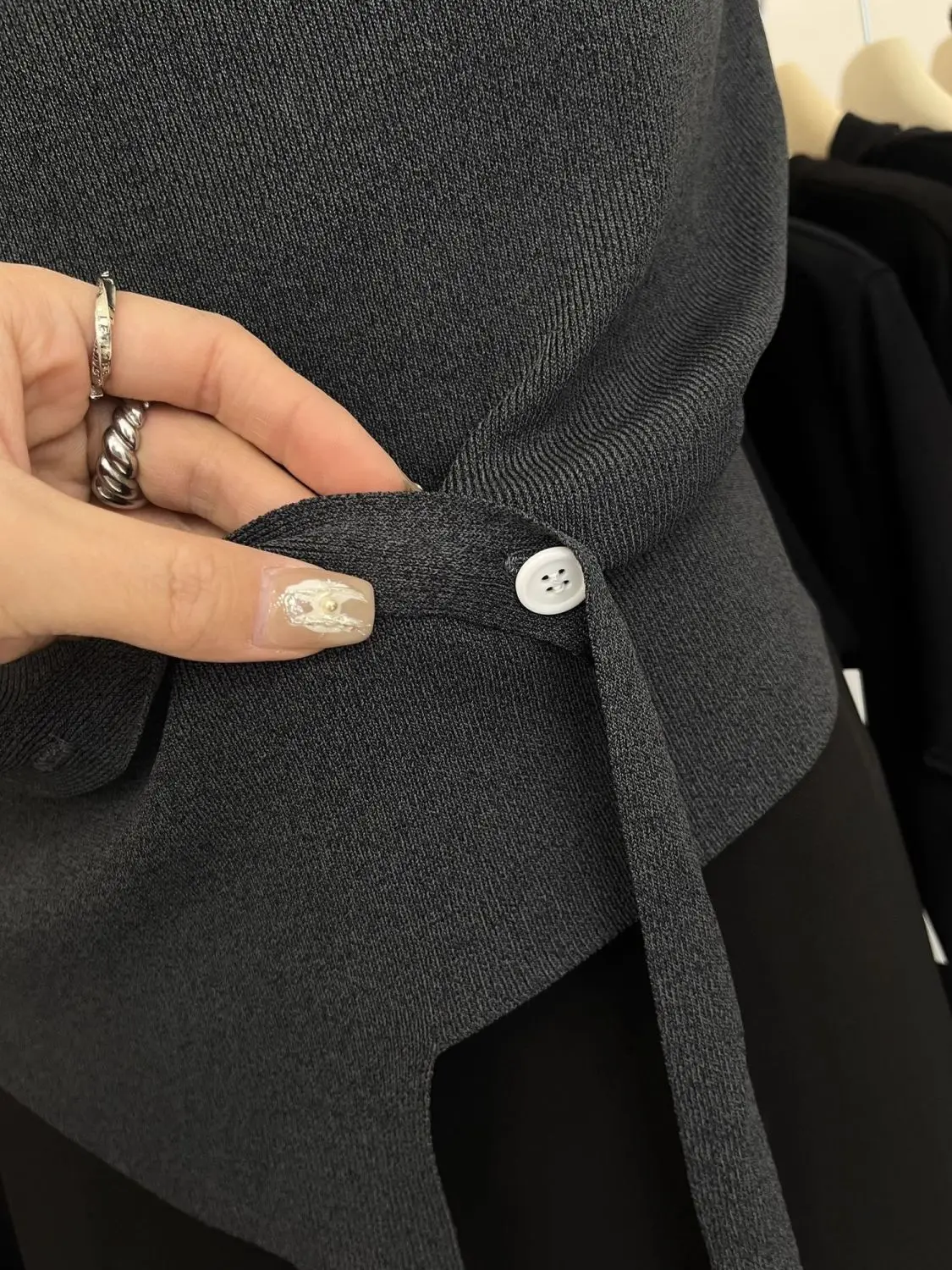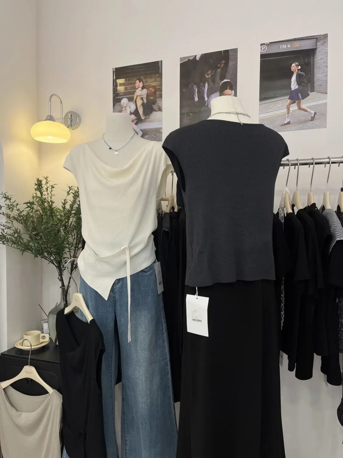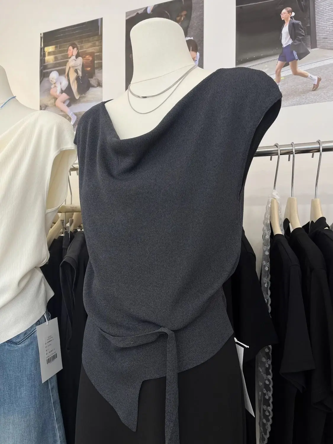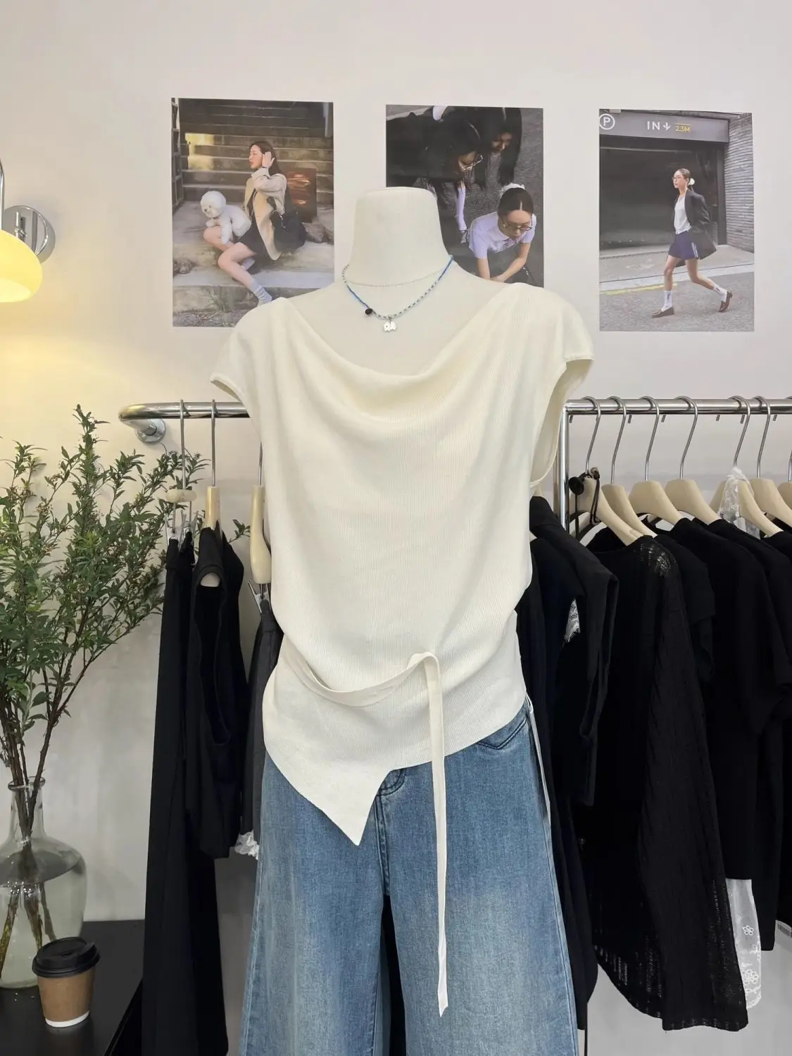 Abbigliamento da donna Camicie lavorate a maglia con maniche volanti piccole Estate Due modi di indossare T-shirt eleganti Lady Slash Neck Top chic irregolari
