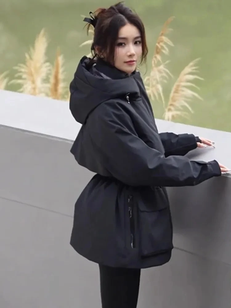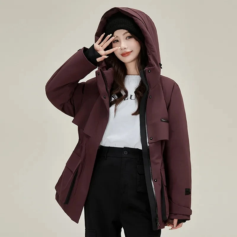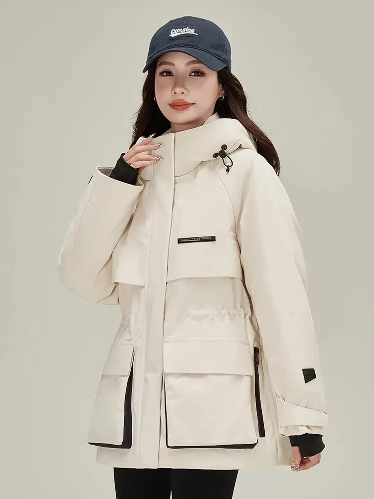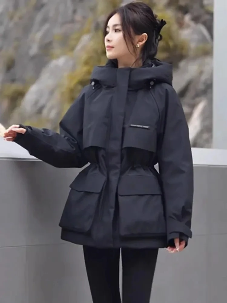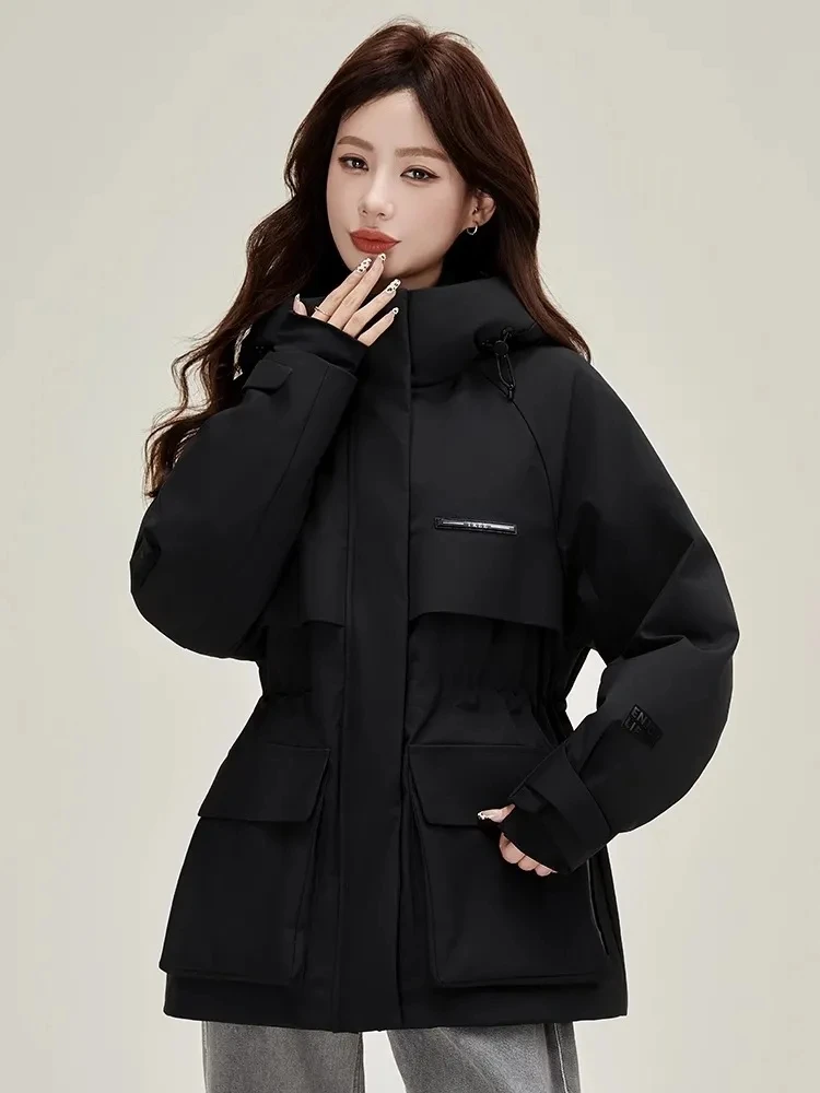 Abbigliamento da lavoro e giacca in cotone per donna nell’inverno 2025, nuova giacca da metà a lunga, calda, ispessita, resistente al freddo e con blocco della carne