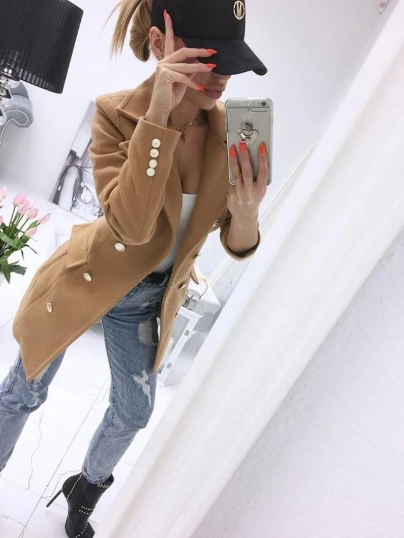 Abbigliamento donna autunno e inverno nuova moda pendolare giacca di lana doppiopetto