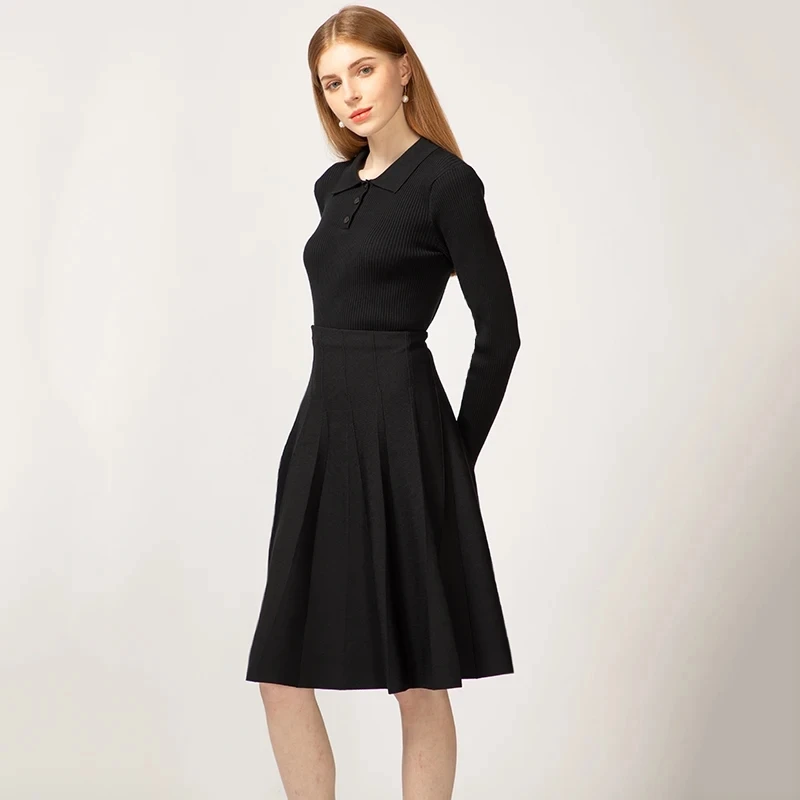 Abbigliamento donna elegante Gonne Gonna di lusso lavorata a maglia ampia Donna Autunno lavorato a maglia femminile Abiti in maglia nera Abiti autunnali Primavera