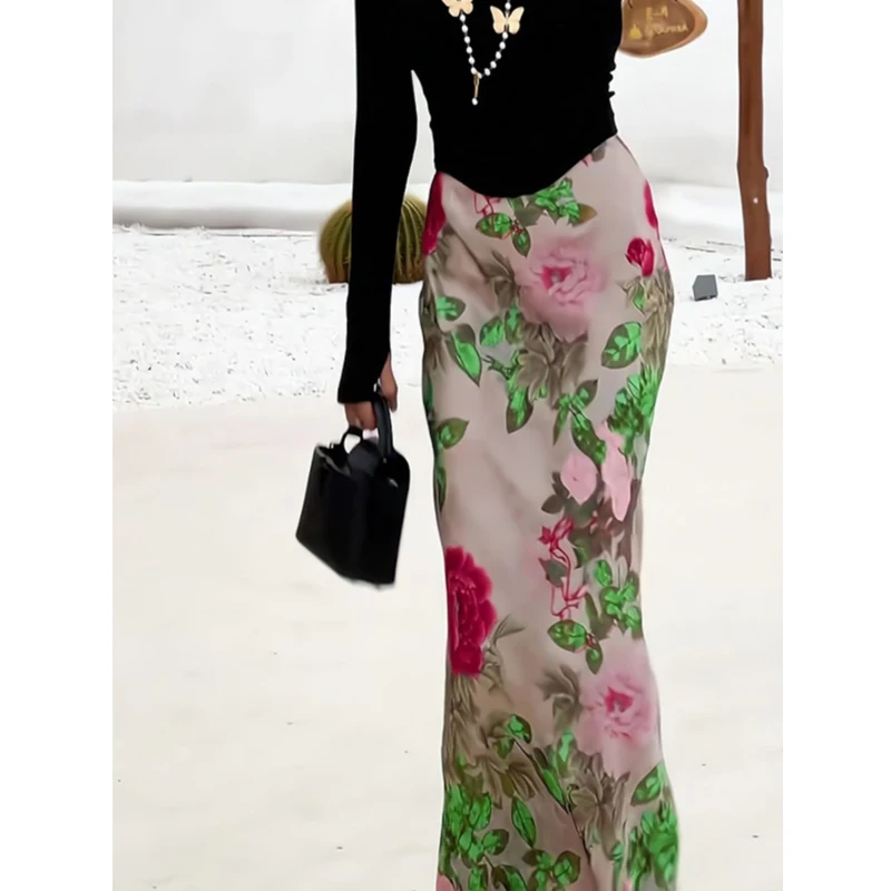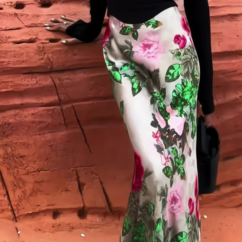 Abbigliamento donna Elegante vintage in raso con stampa floreale Gonne lunghe chic di lusso Gonna maxi da festa sottile a vita alta elegante femminilePensa ad un Regalo Unico e Utile per le Persone a te Vicine!! Regala un buono a partire da € 10,00 a € 300,00
