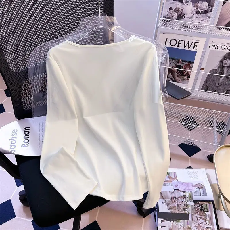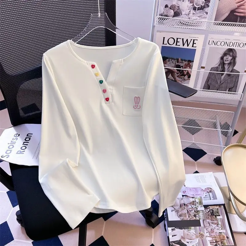 Abbigliamento donna Manica lunga Allentata Semplicità Taglie forti Top Primavera Autunno Nuovo scollo a V Stile pigro T-shirt Moda casual da strada