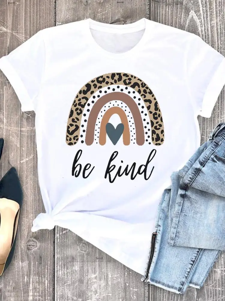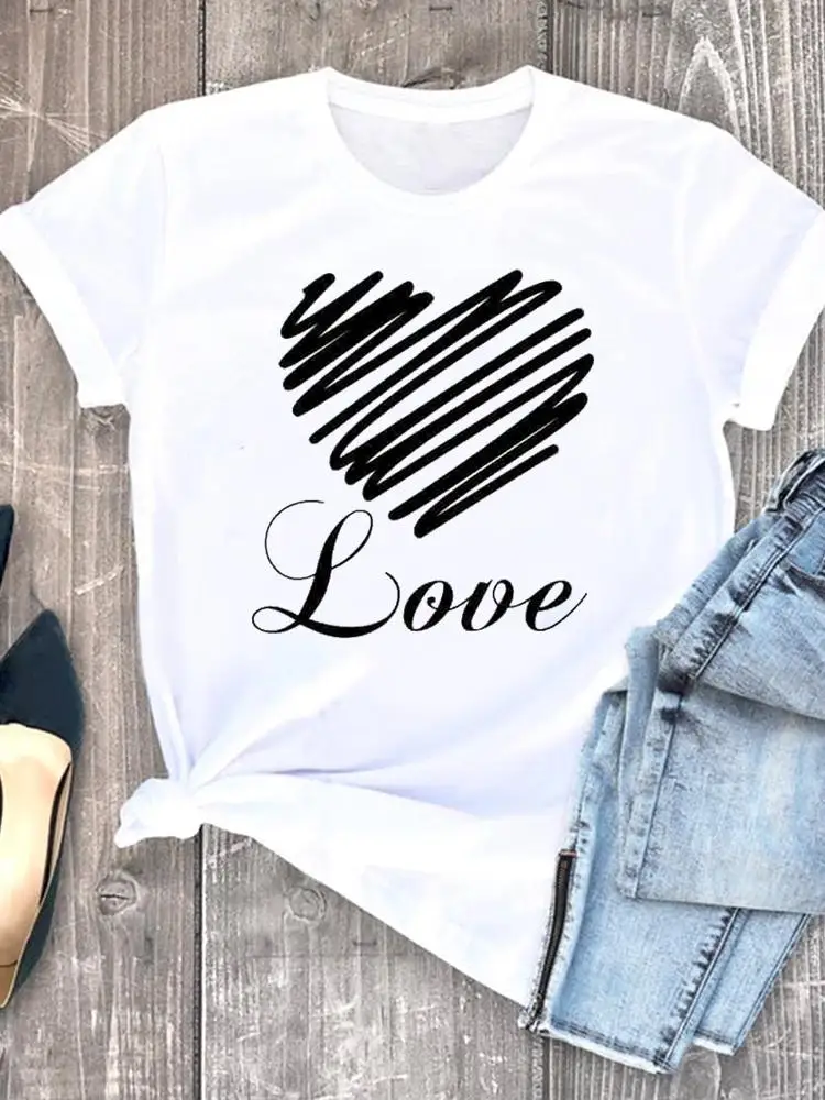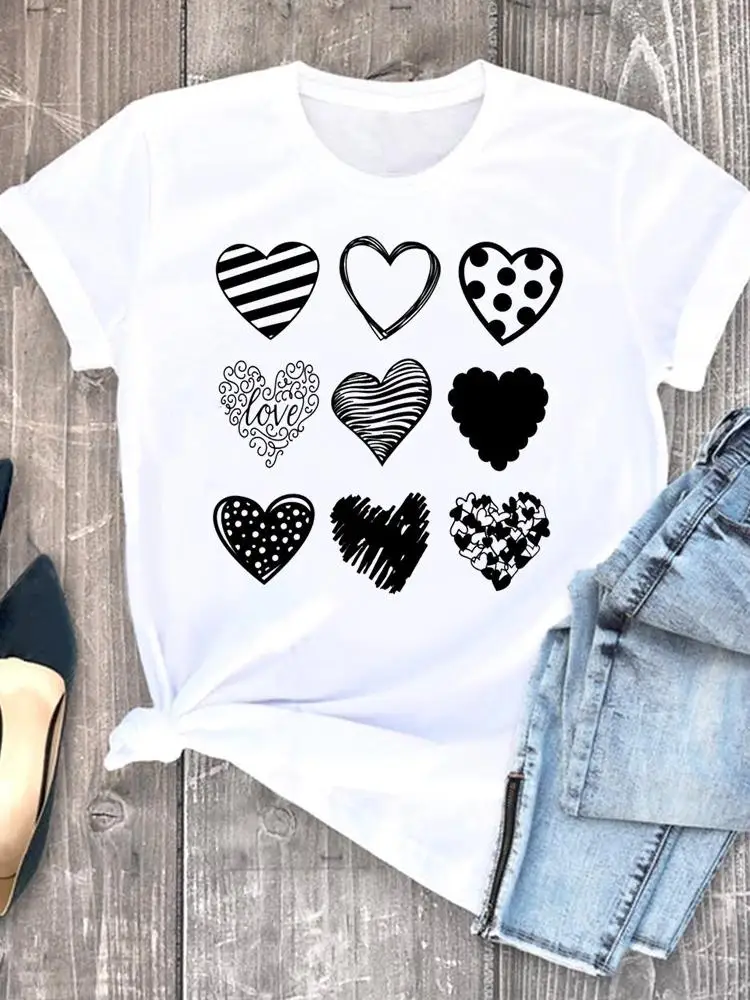 Abbigliamento estivo leopardo amore cuore dolce Moda Donna Tee T-shirt Casual manica corta Regular T-shirt grafica femminile